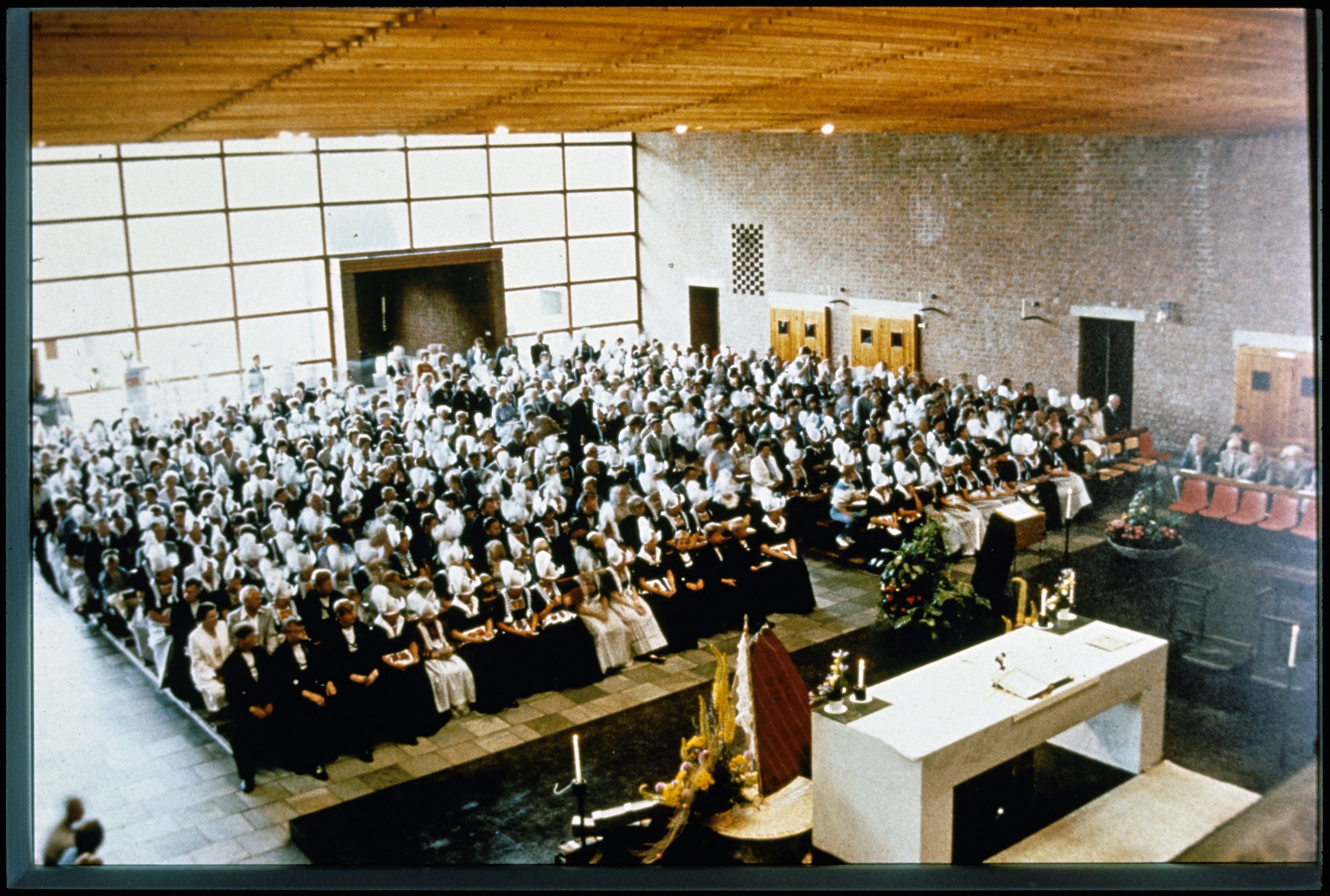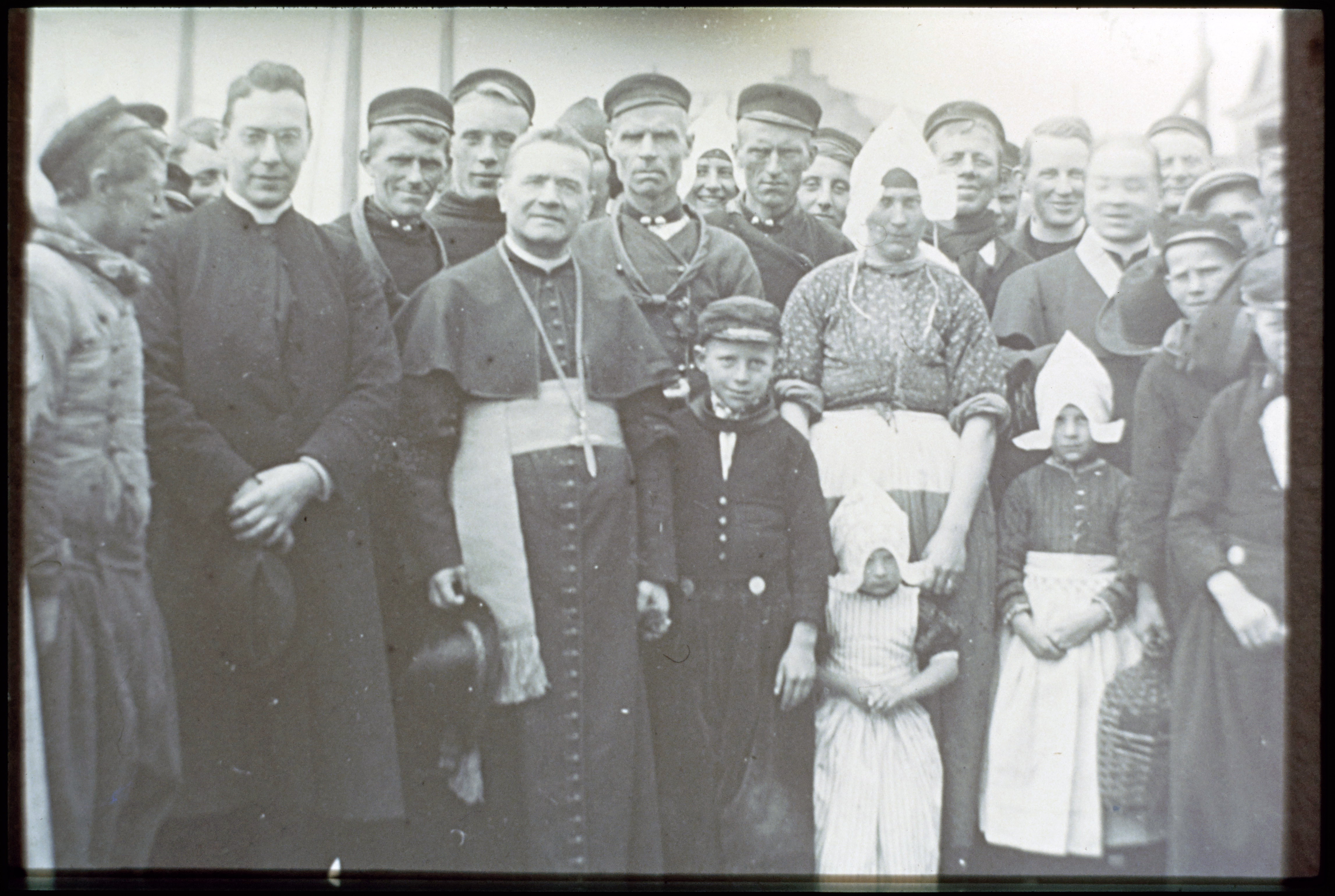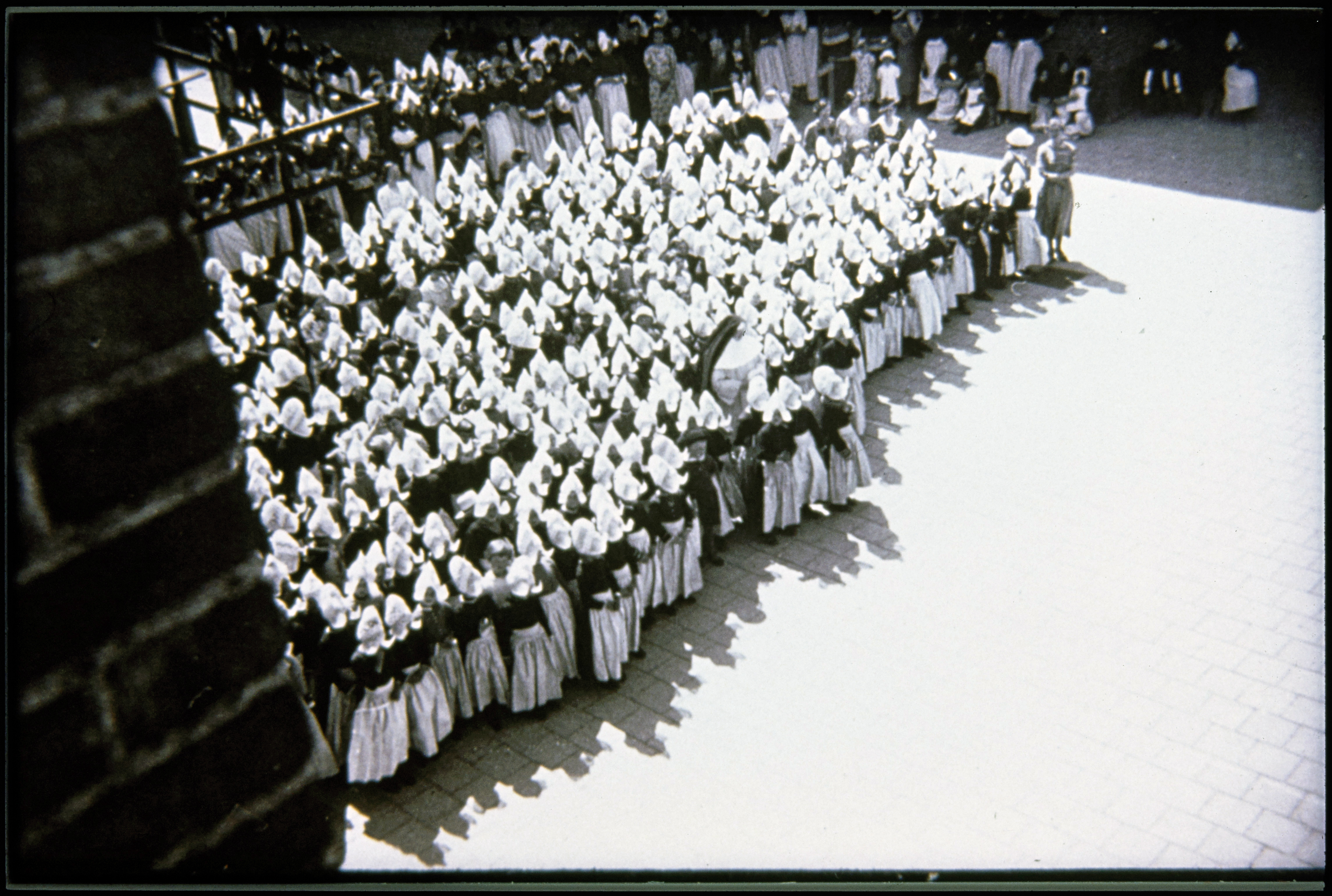 Volendammers in klederdracht ter kerk