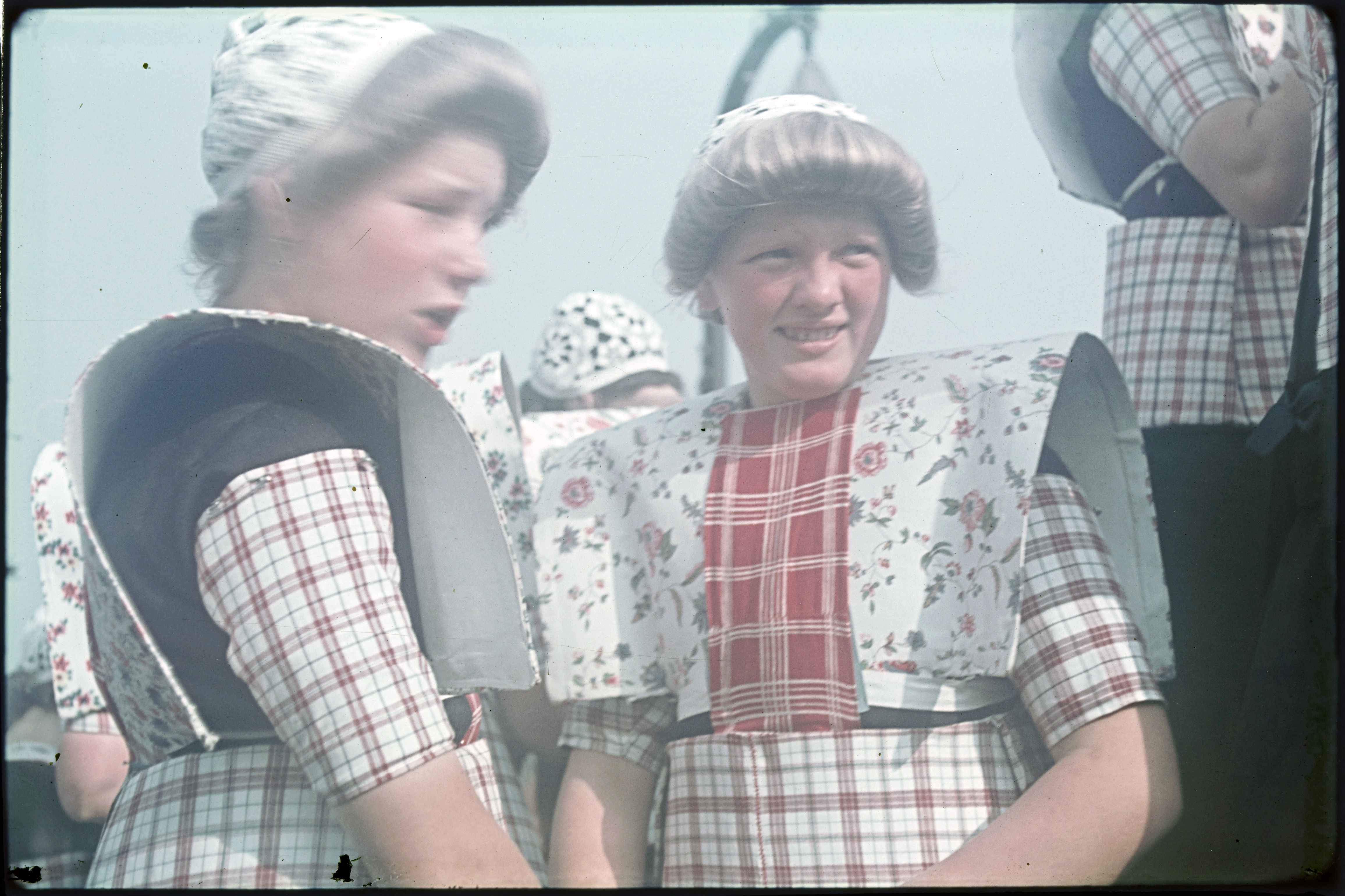 Twee meisjes in klederdracht.