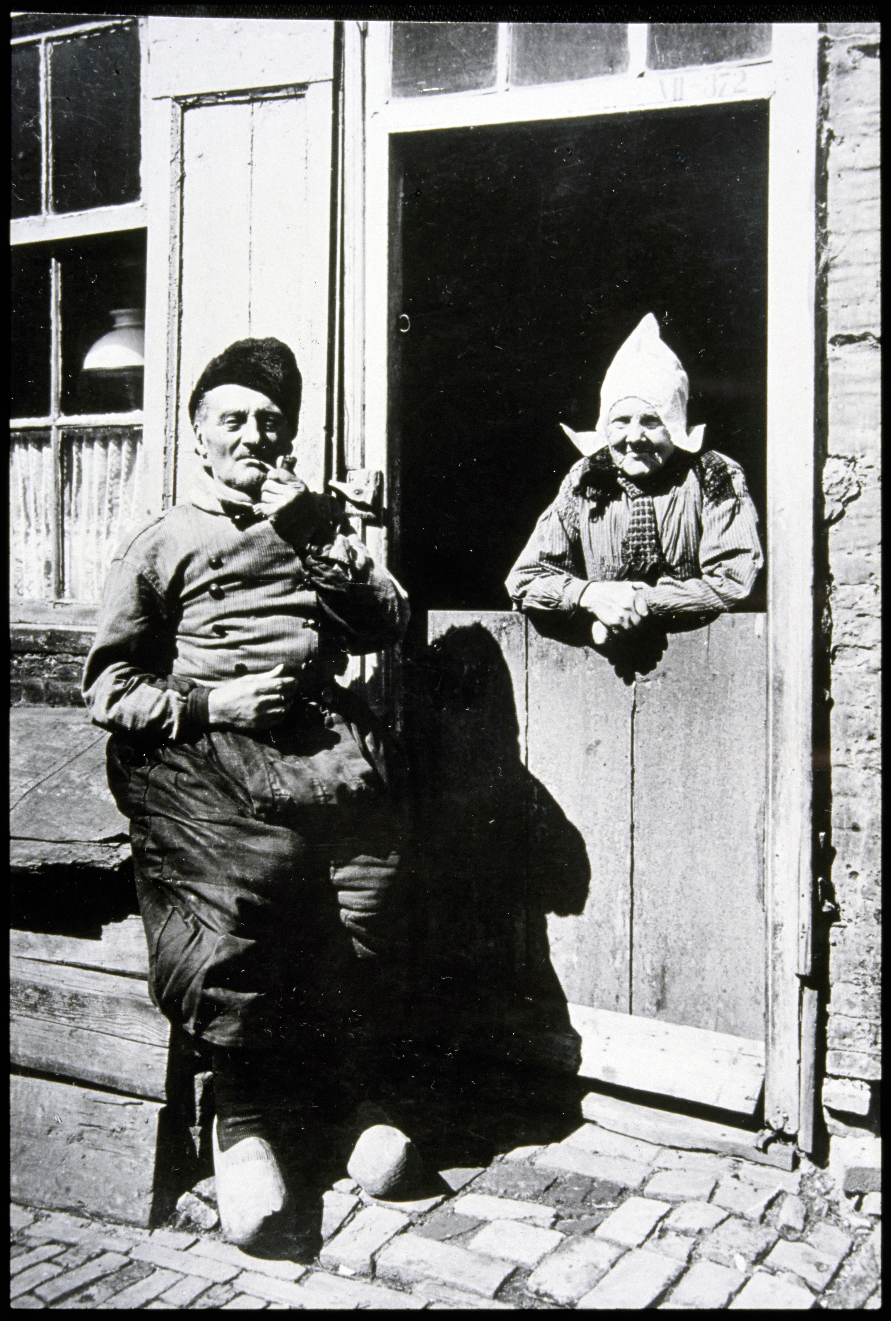 Volendammer vrouw vóór woning