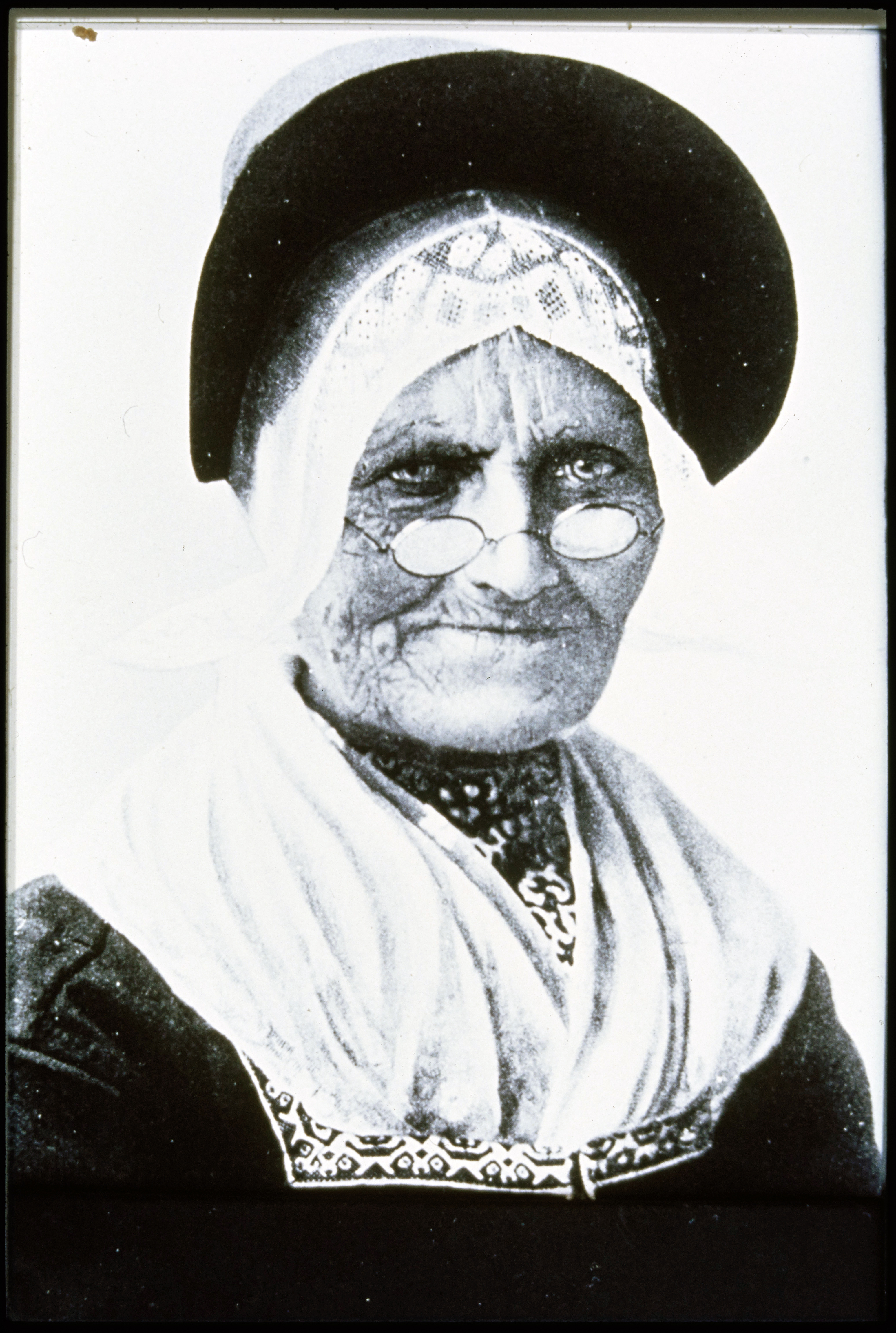 Volendammer vrouw in dracht met bril
