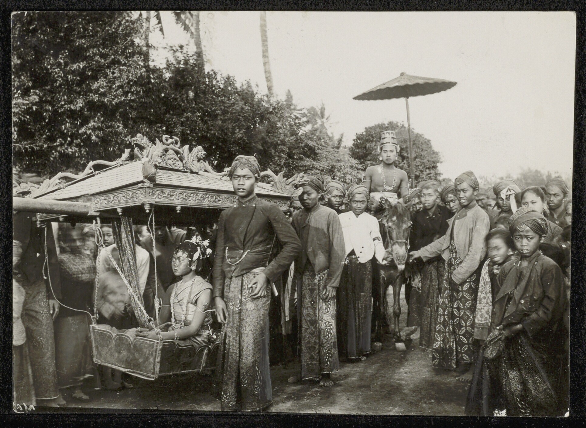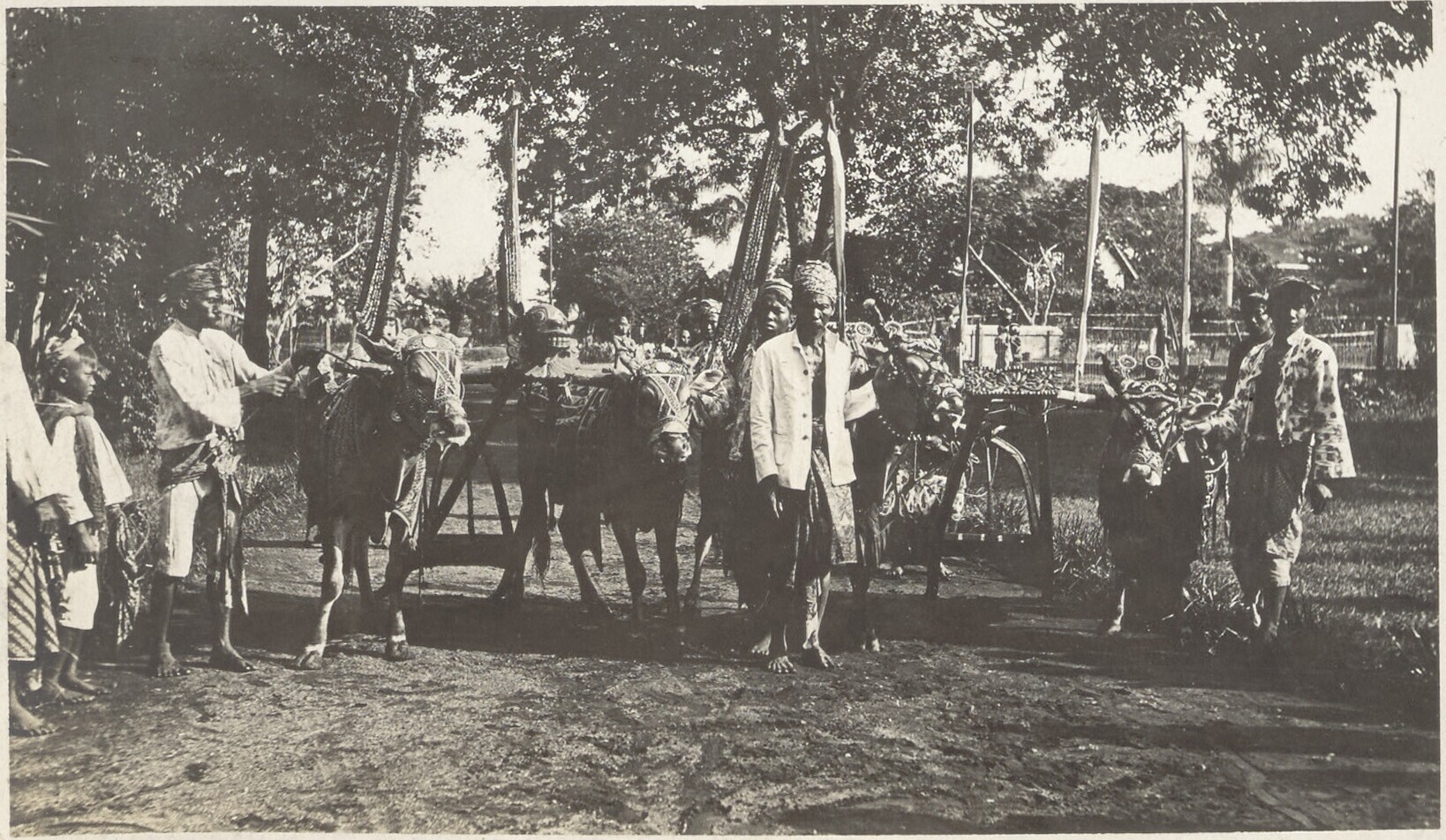 Twee vrouwen op pony's met Javanen ernaast in Sarang...