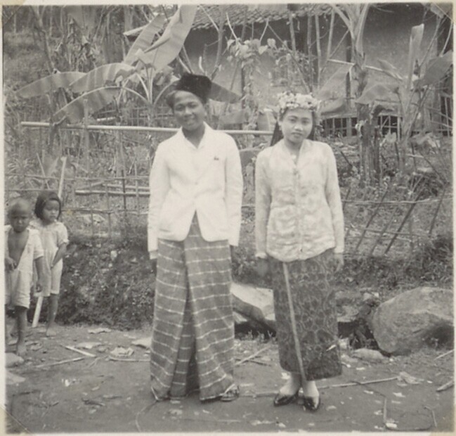 Portret van twwe Javaanse vrouwen in de tuin nabij P...