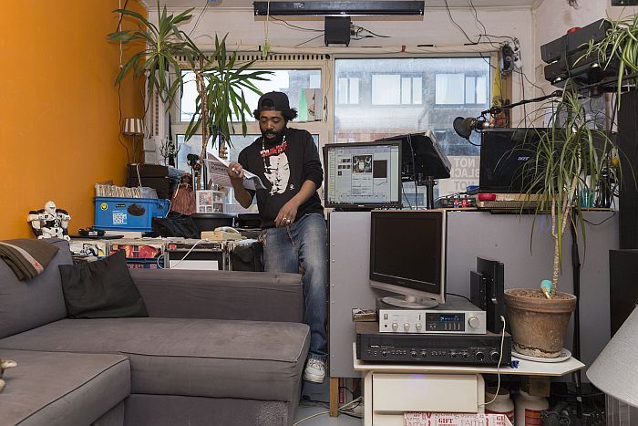 Portret van Romeo, alias DJ MixMaster Fader, in zijn...