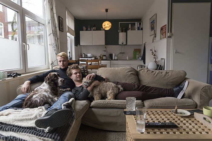 Portret van Peter en Eugeniu in hun woonboot aan de ...