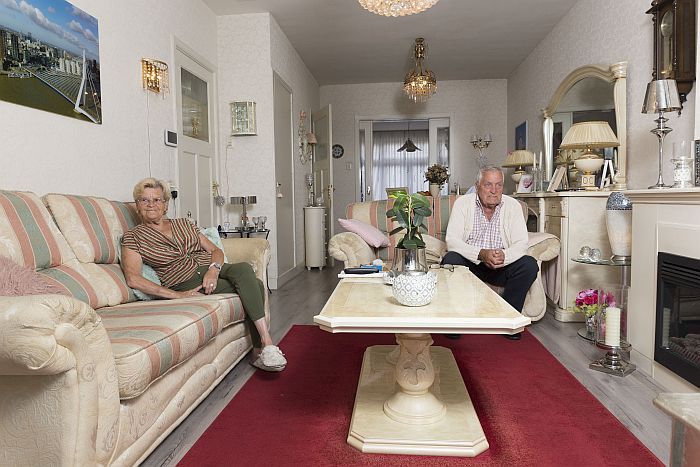 Portret van Riet en Henk in hun woonkamer aan de Mij...