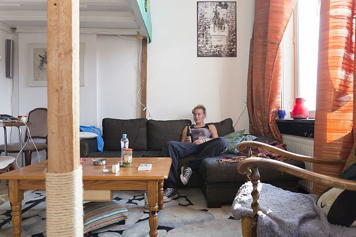 Portret van Lonneke in haar woonkamer in het Poortge...