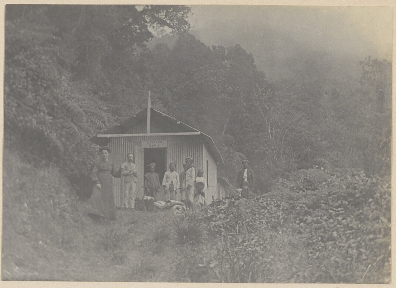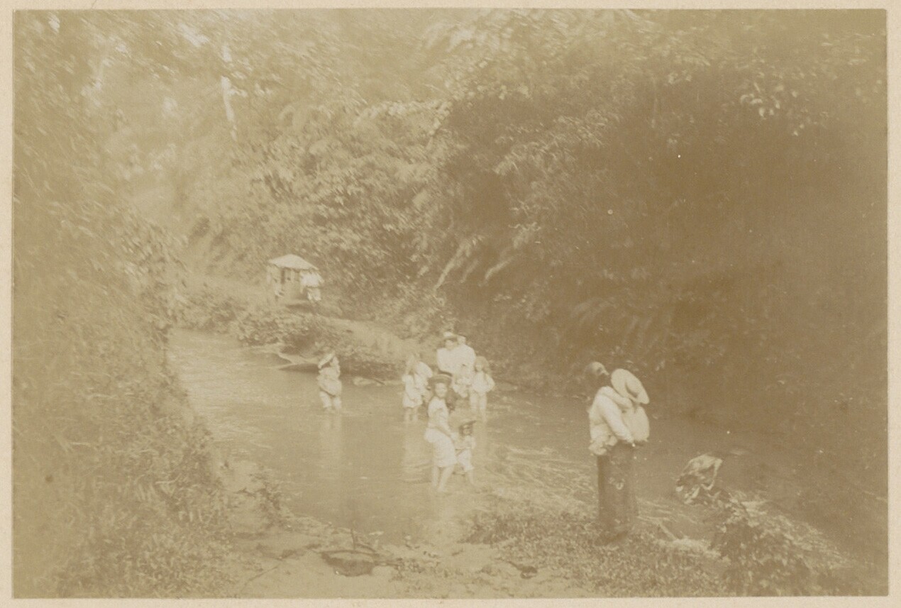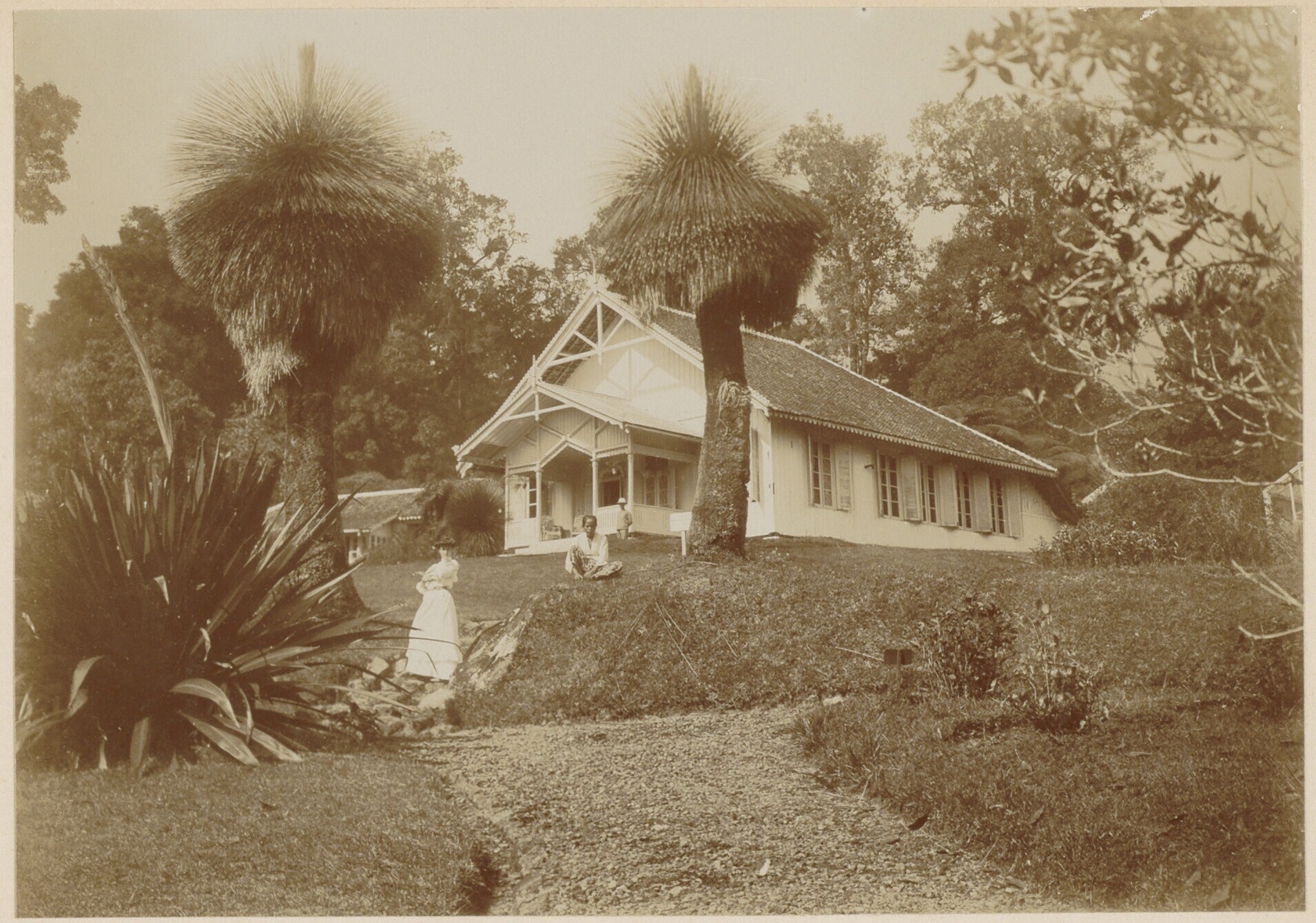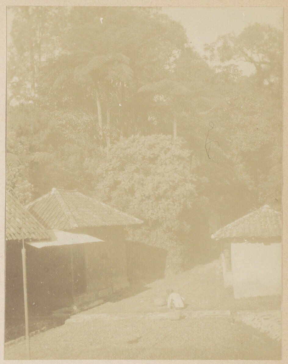 Uitzicht op het laboratorium te Tjibodas met op de v...