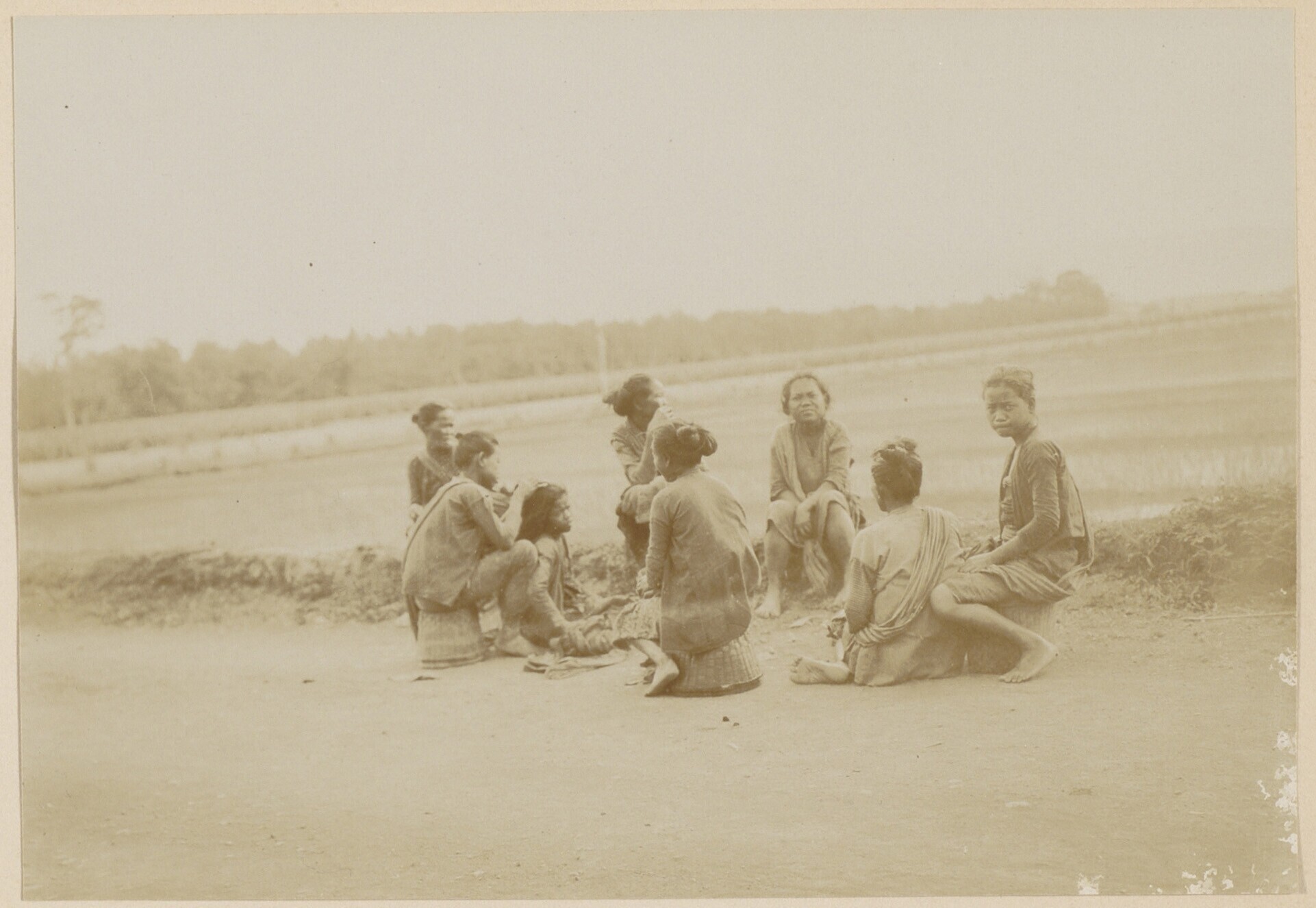 Groep vrouwen zitten bij elkaar te Wedi, Jawa tengah