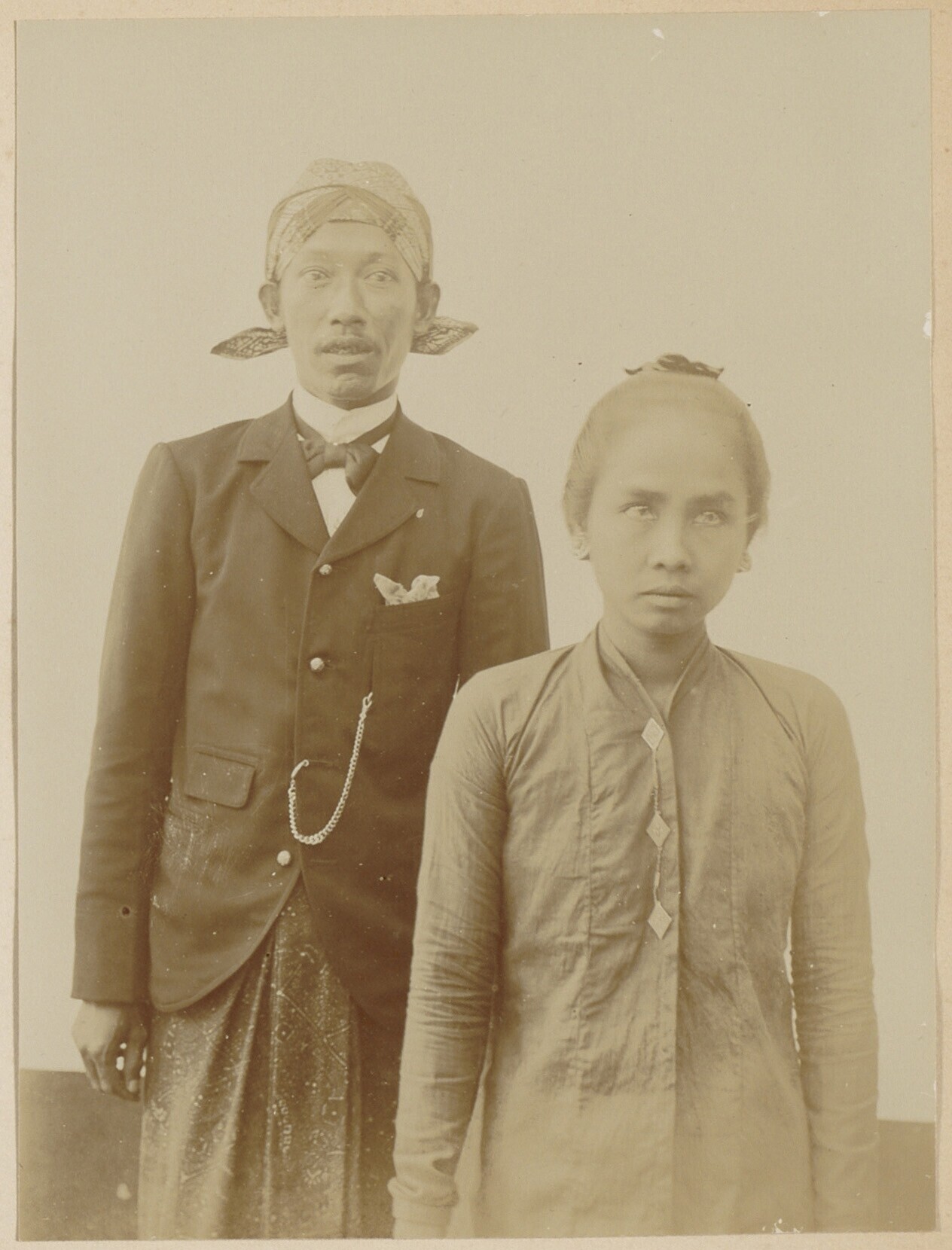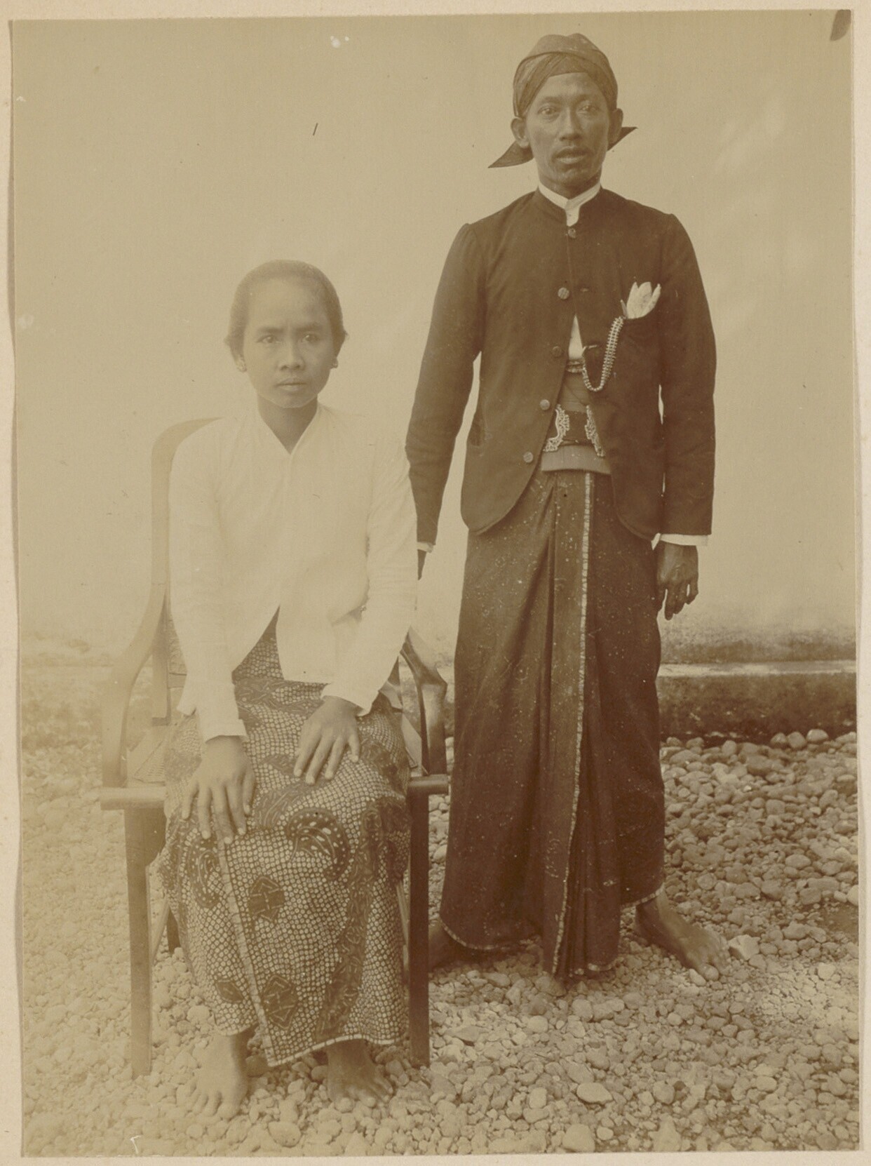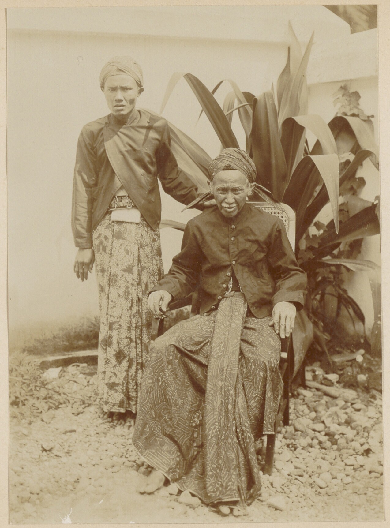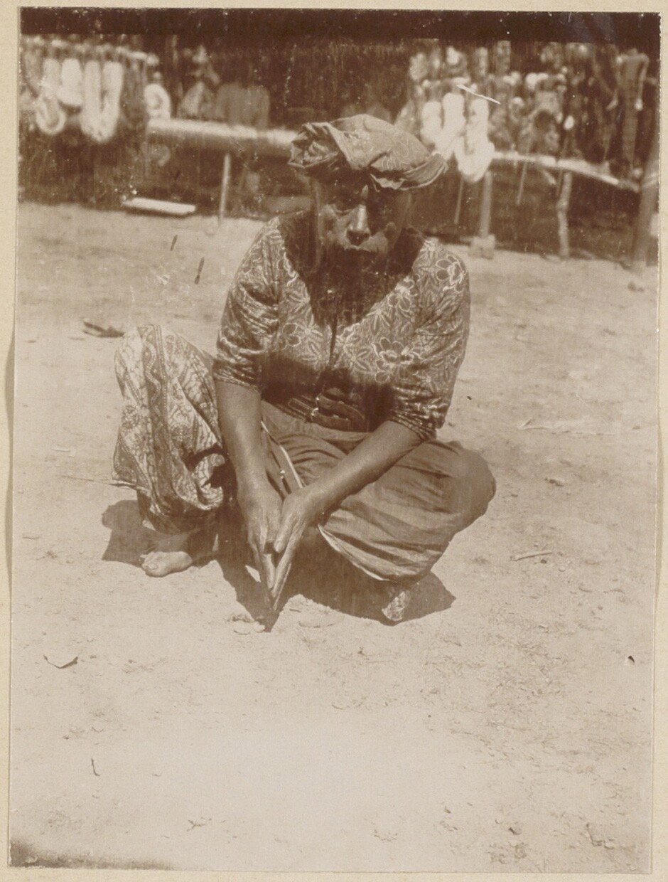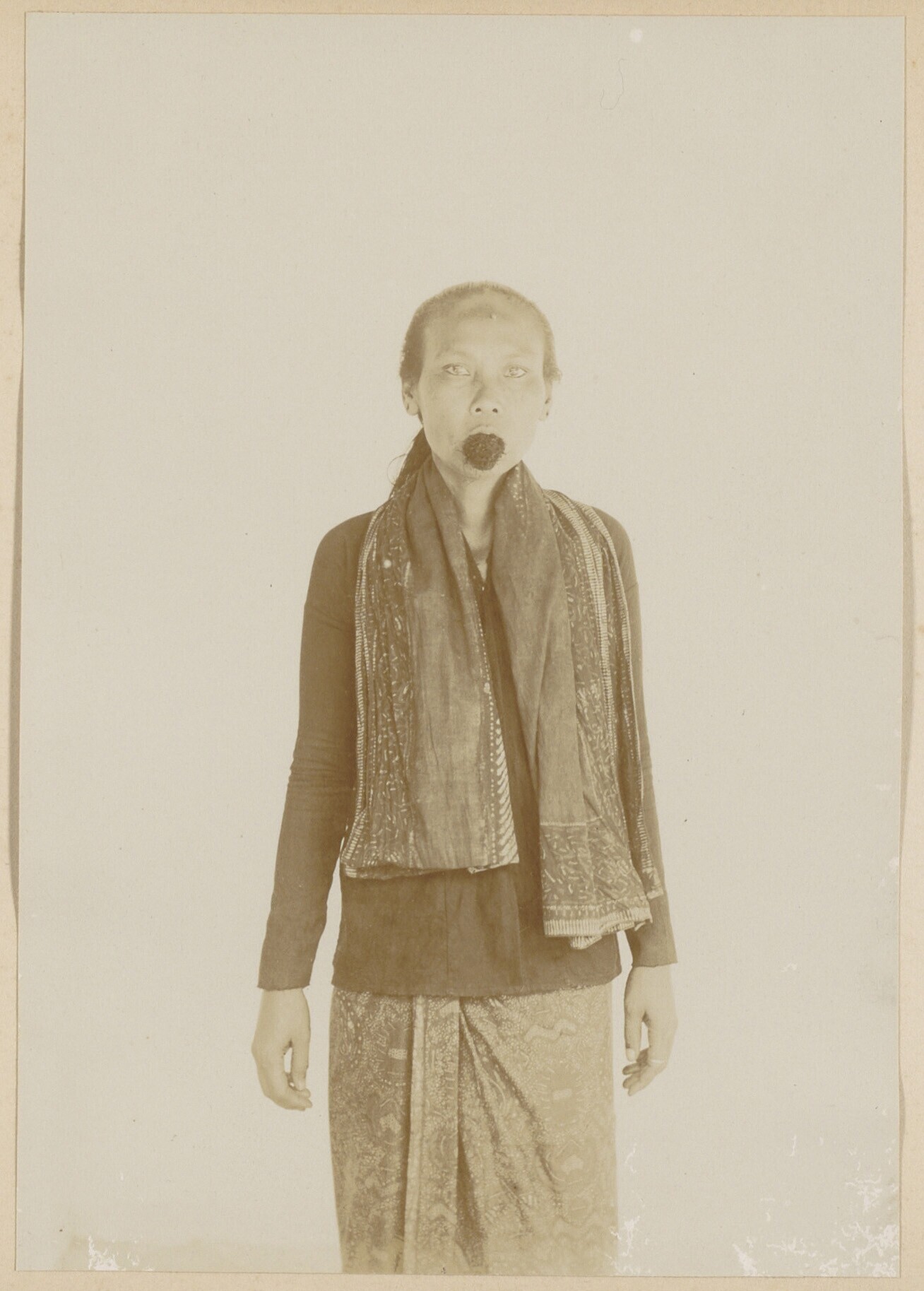 Portret van Javaanse vrouw met tabakspruim in haar mond