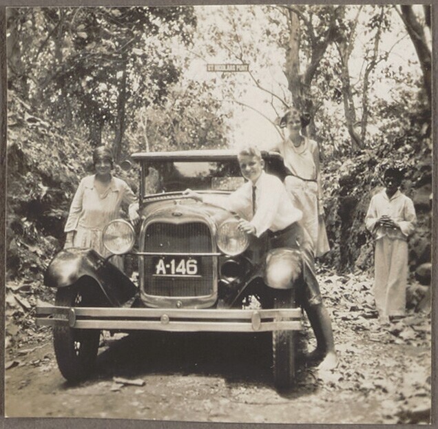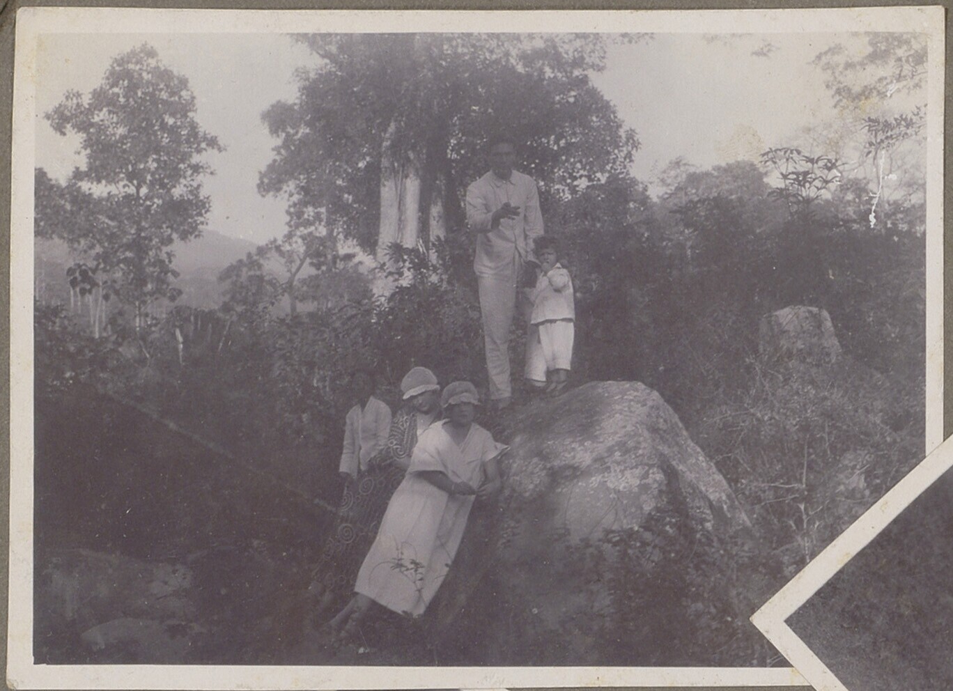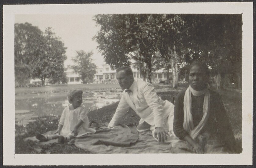Nederlandse familie met Javaanse vrouw op een grasve...