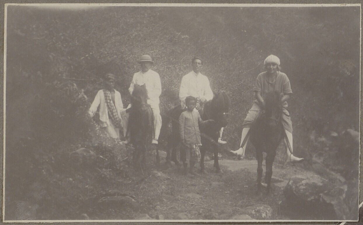 Europese vrouw met kind en een Javaanse kinderverzor...