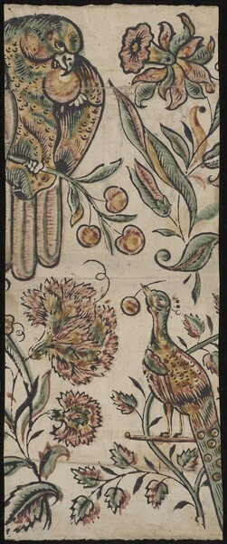 Blad bronsvernispapier met fruit- en bloemmotieven, ...