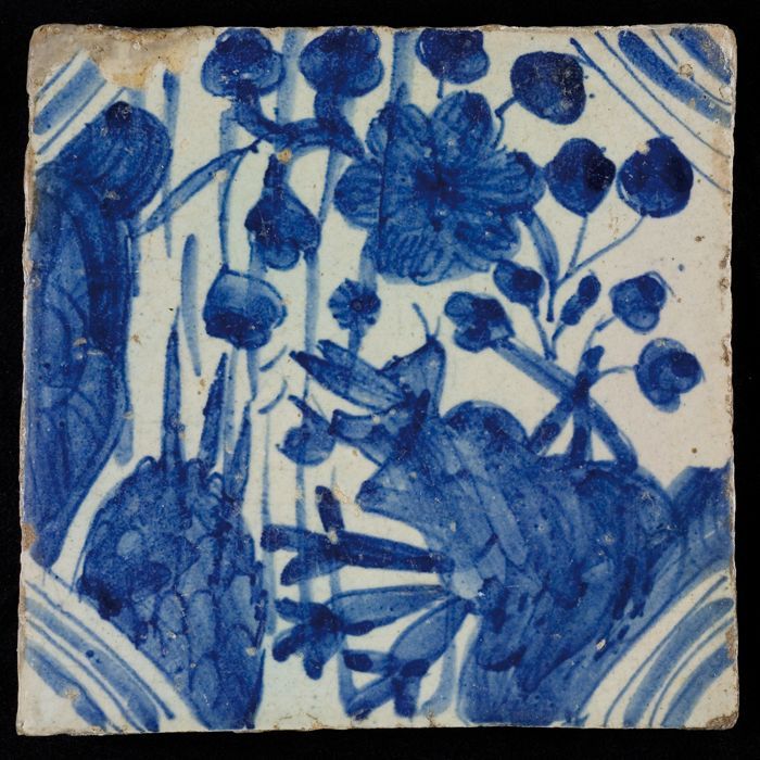 Tegel van tegelveld van vier tegels, blauw op wit, '...