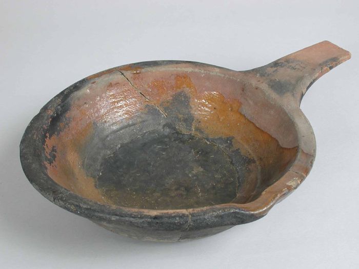 Aardewerk bakpan of koekenpan met brede steel en sch...
