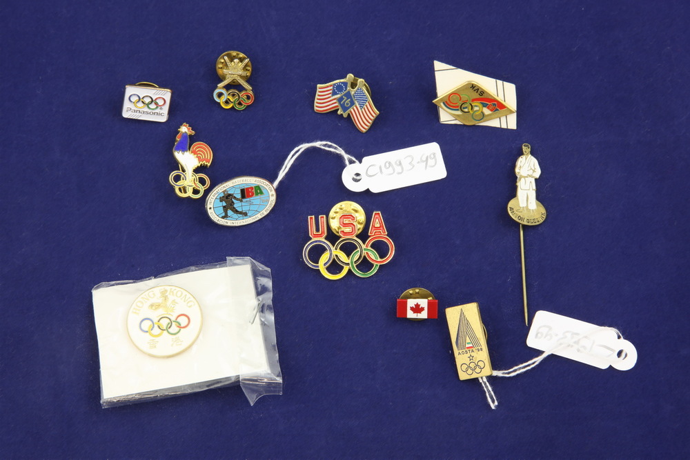 Diverse speldjes en pins verzameld door NOC-medewerk...