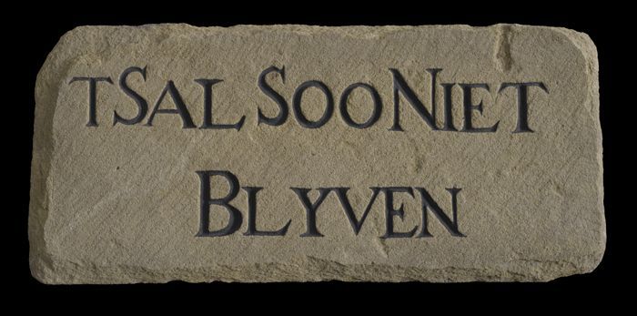Gevelsteen met tekst "T Sal Soo Niet Blyven"