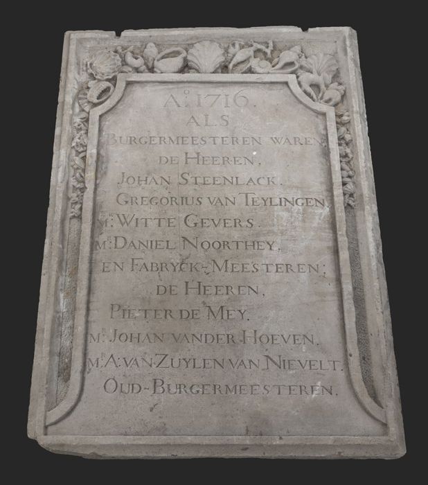 Gevelsteen met "1716 als burgermeesteren waren de he...