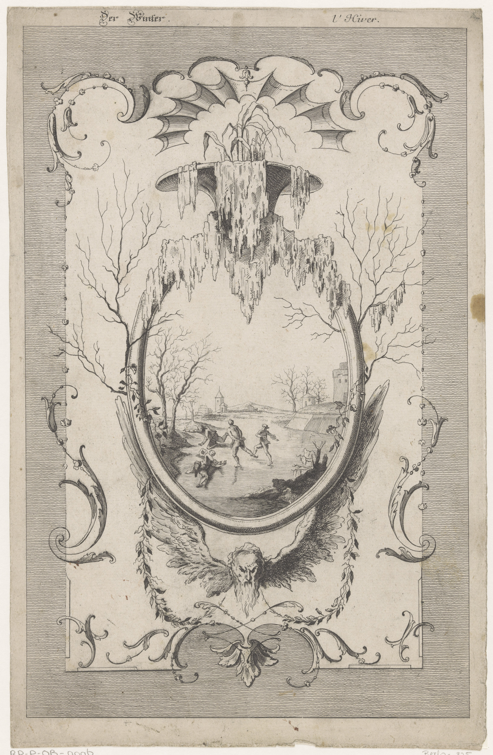 Cartouche met twee gevleugelde vrouwen
