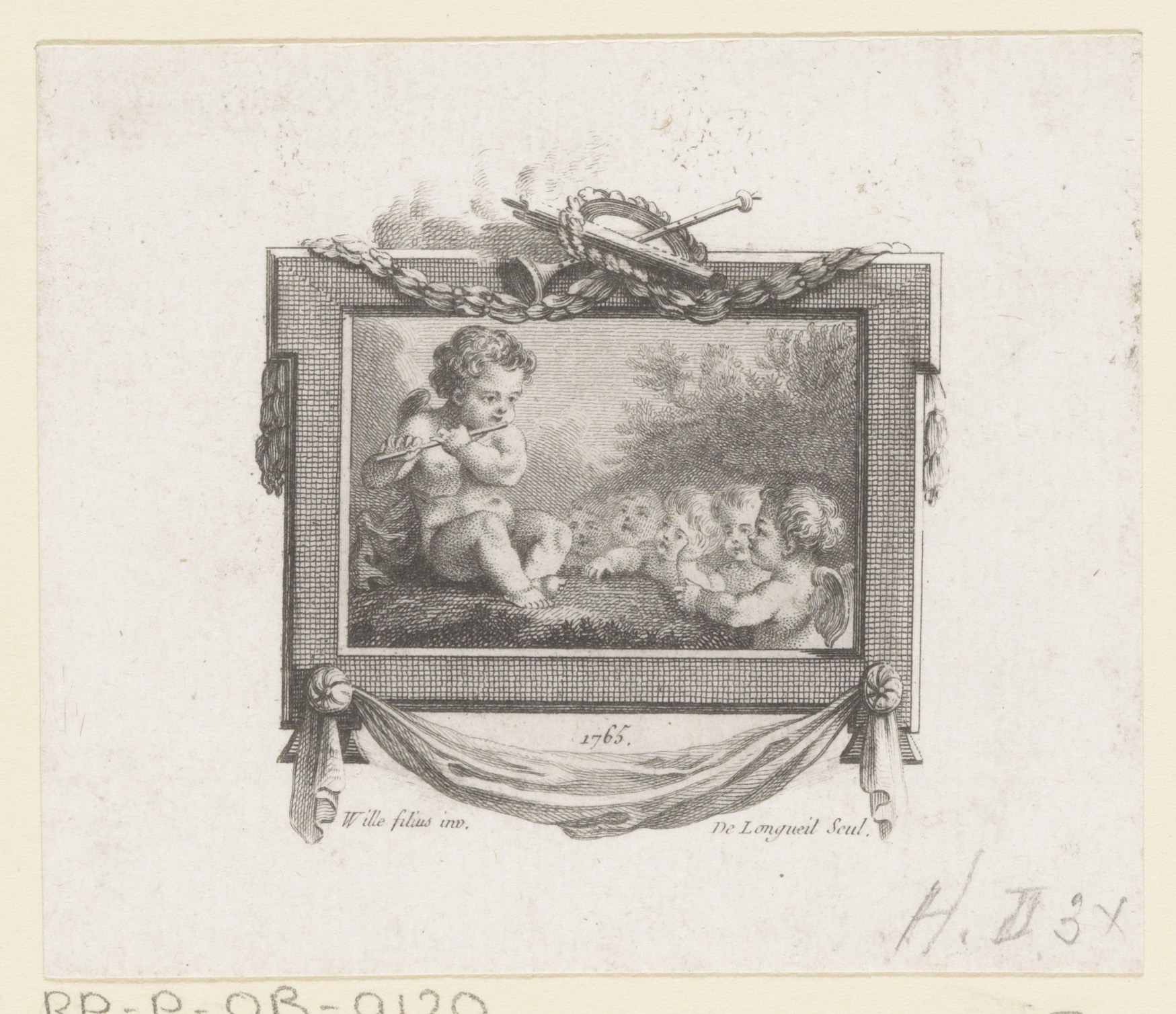 Vignet met musicerende putto