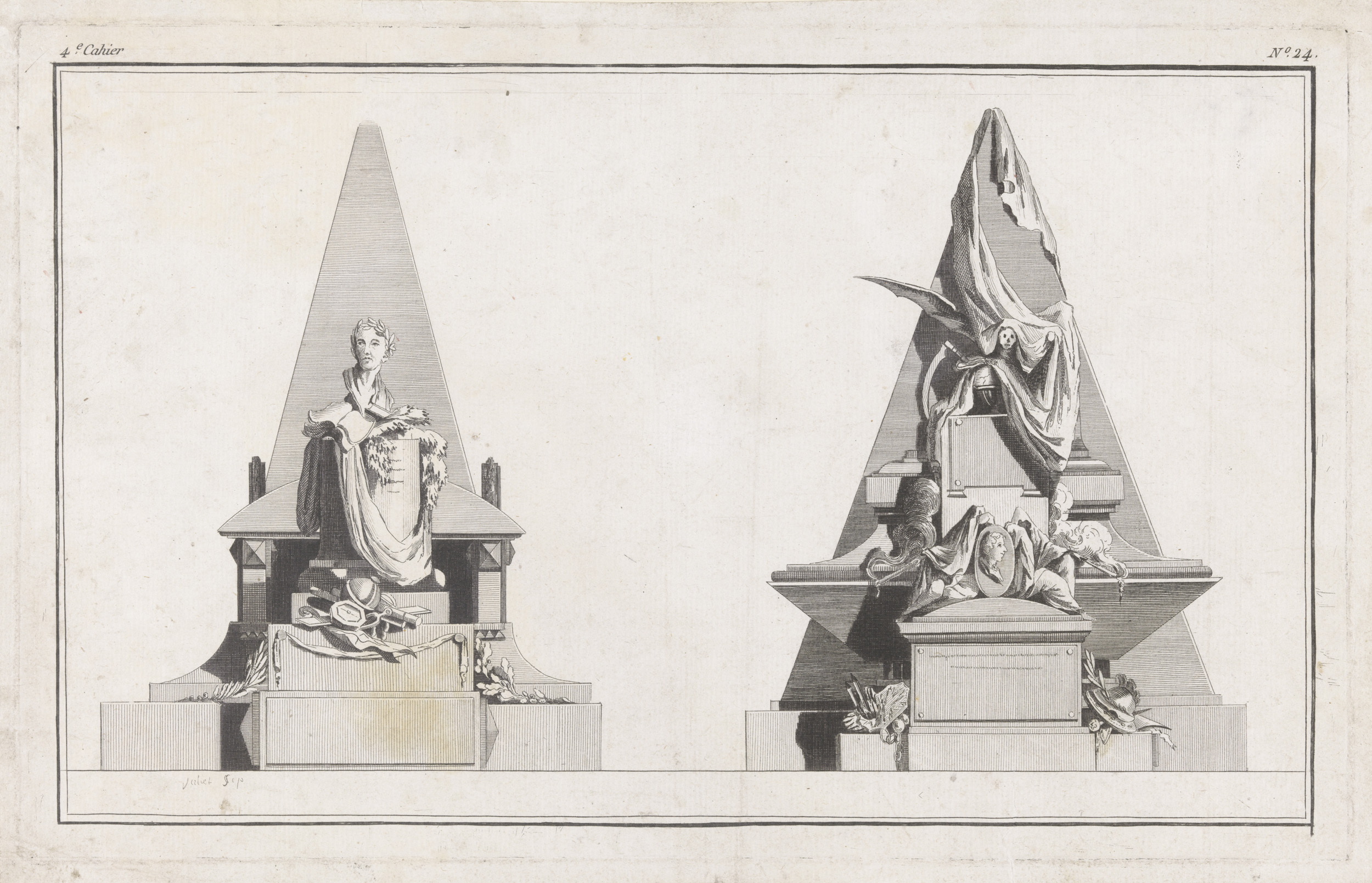 Twee tombes met buste en draperieën