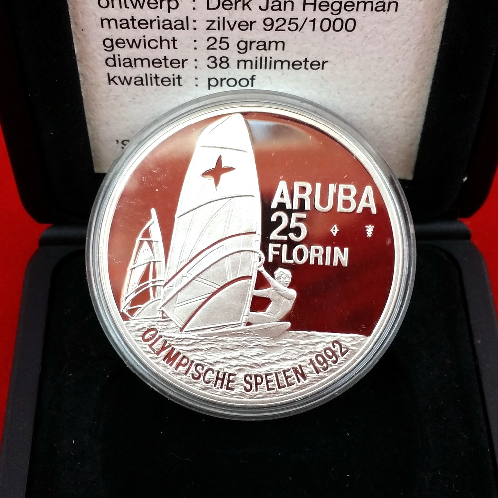 Zilveren Olympische Aruba 25 Florijn gedenkmunt 1992...