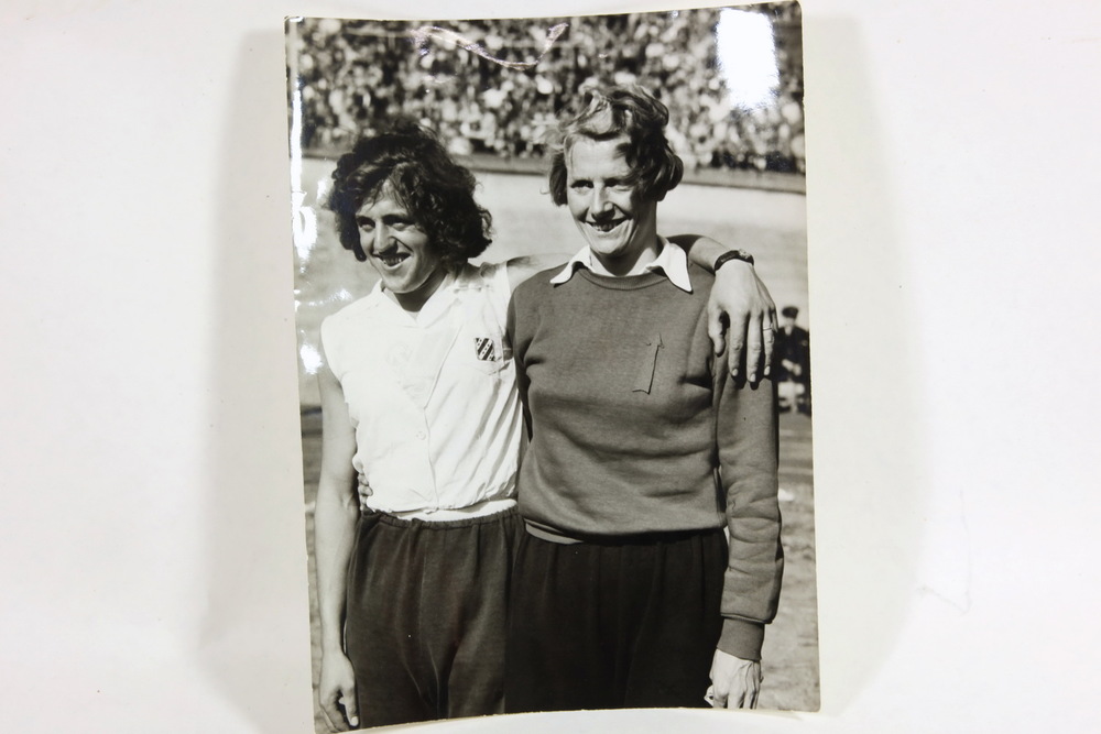 Zw/w-foto van een hardlopende Fanny Blankers-Koen me...