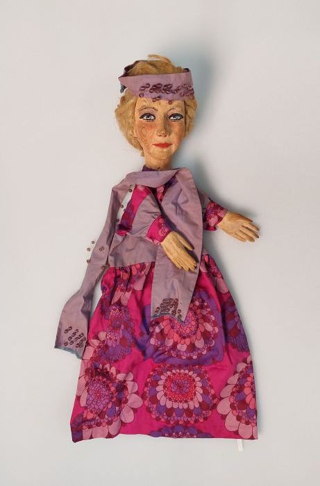 Poppenkastpop: vrouwelijke figuur in donkerrode kleding