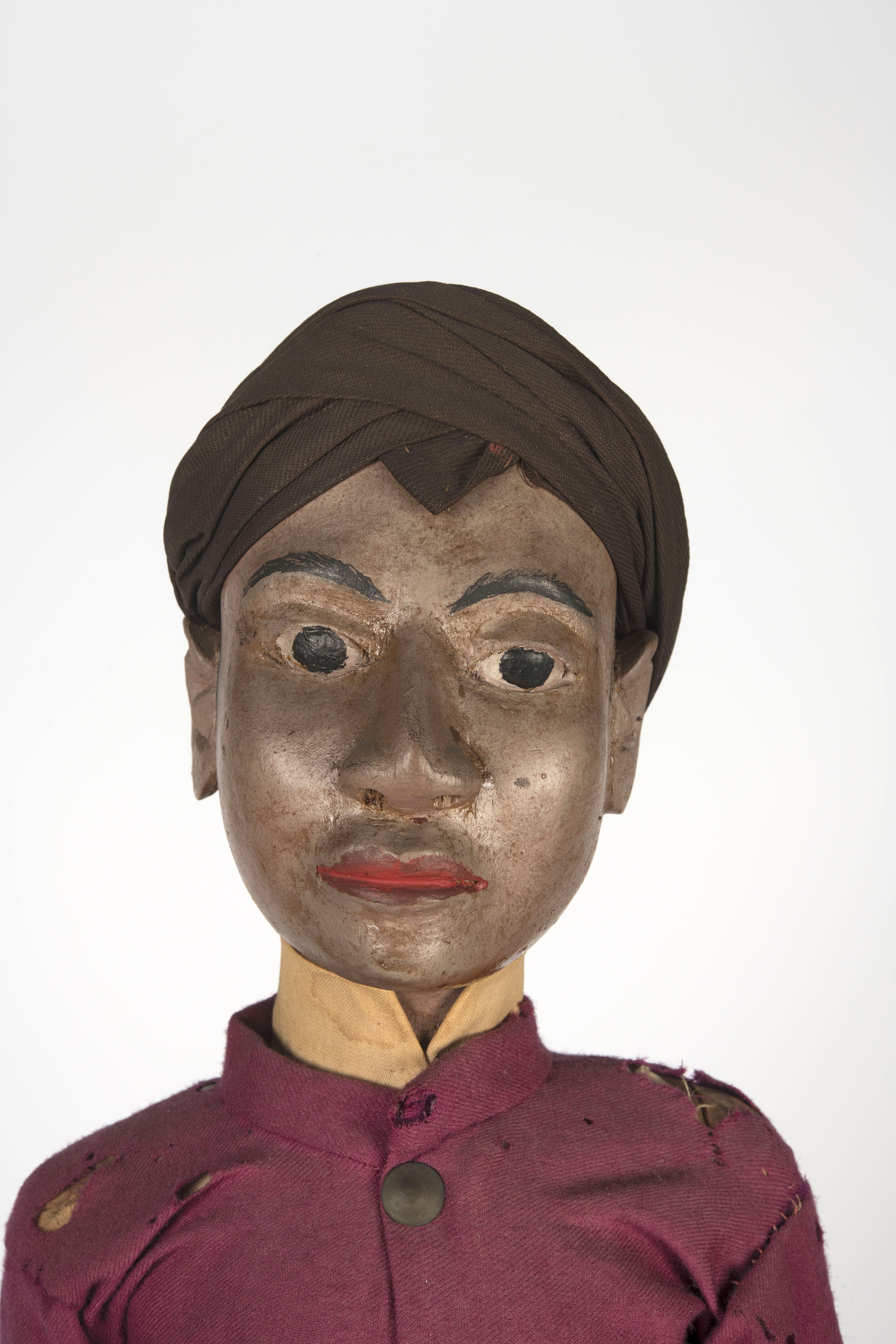 Houten wajangpop mogelijk voorstellende Musta of Ron...