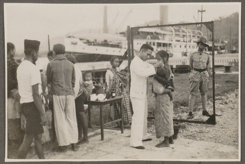 Belangstelling op de kade bij het vertrek van Pakoe ...