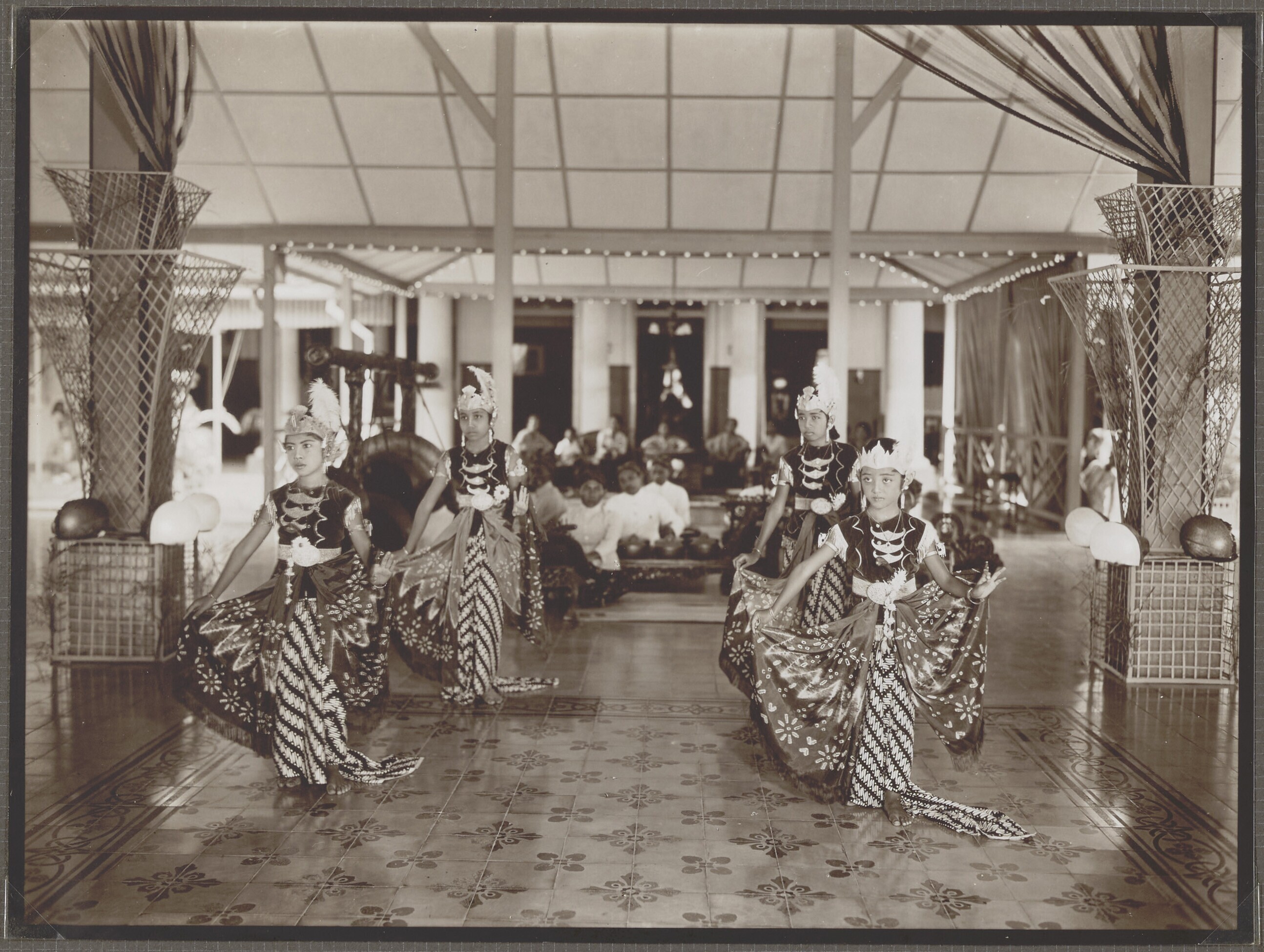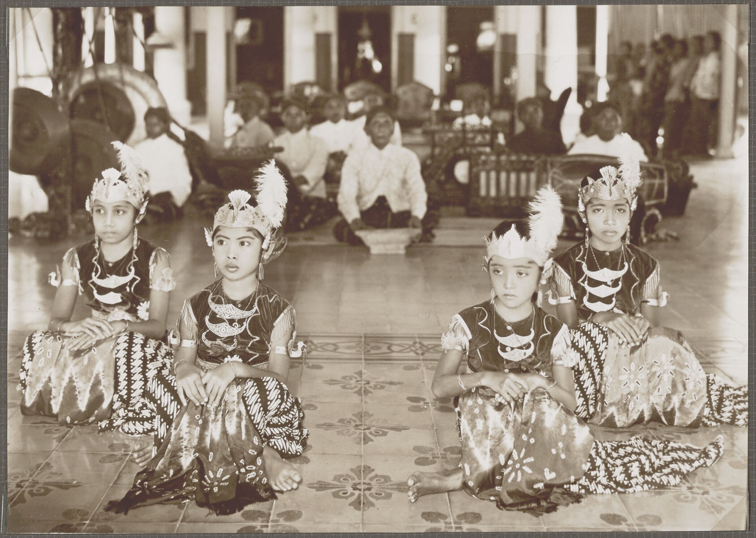 Vier Javaanse danseressen tijdens de Serimpi-dans, i...