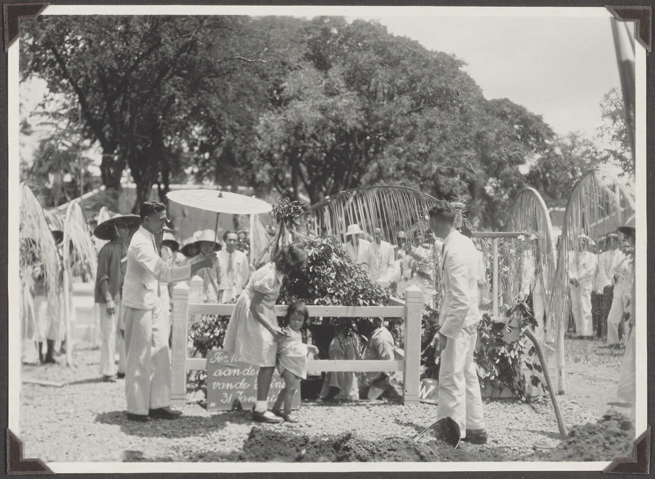 Gezelschap plant een waringinboom ter gelegenheid va...