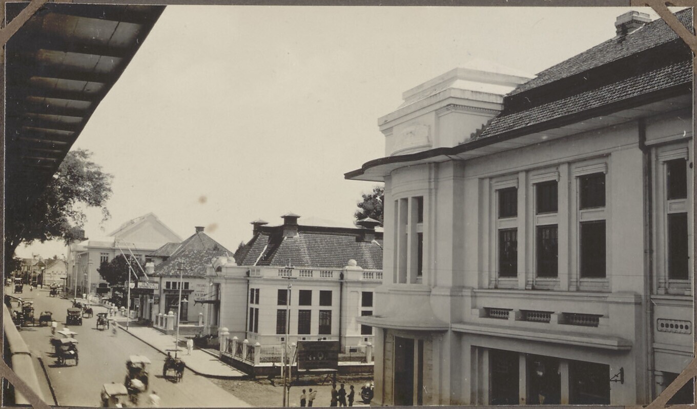 Straatgezicht met zicht op het sociëteitsgebouw van ...