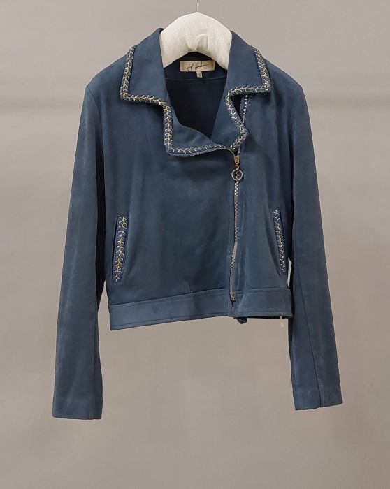 Blauwe blouse van driedelig pak van Joke Bruijs