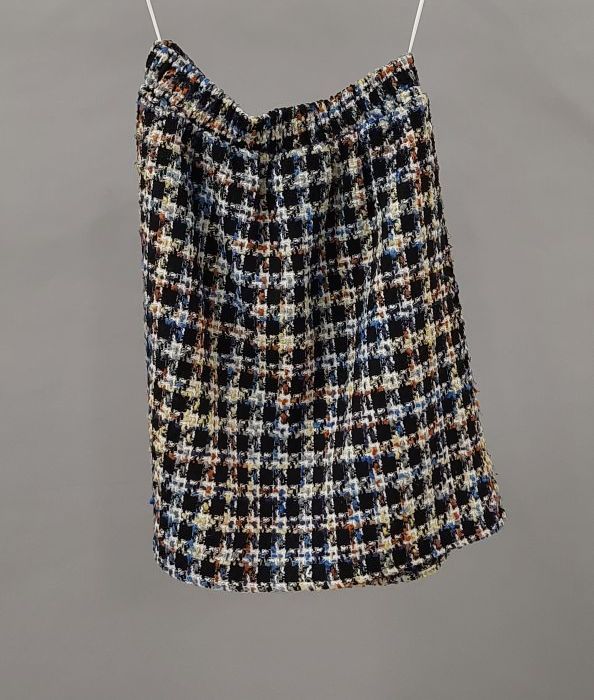 Zwart-wit geruite rok van driedelig pak van Joke Bruijs
