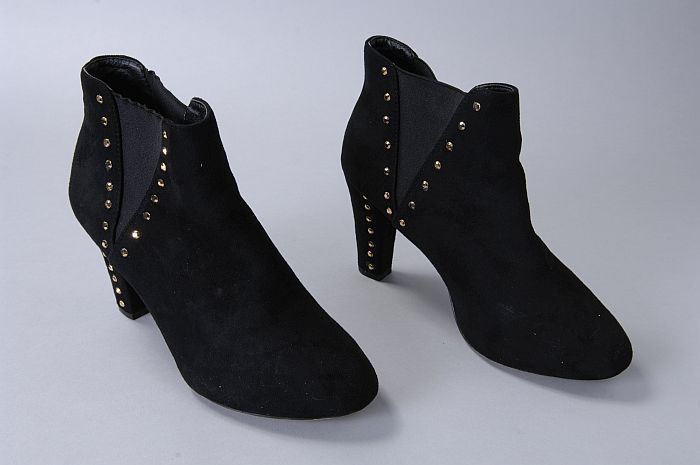 Een paar zwarte dameslaarsjes, gedragen door Joke Br...