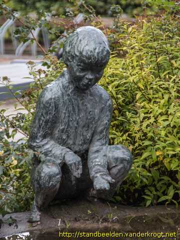 Jongetje bij vogeldrinkbak
