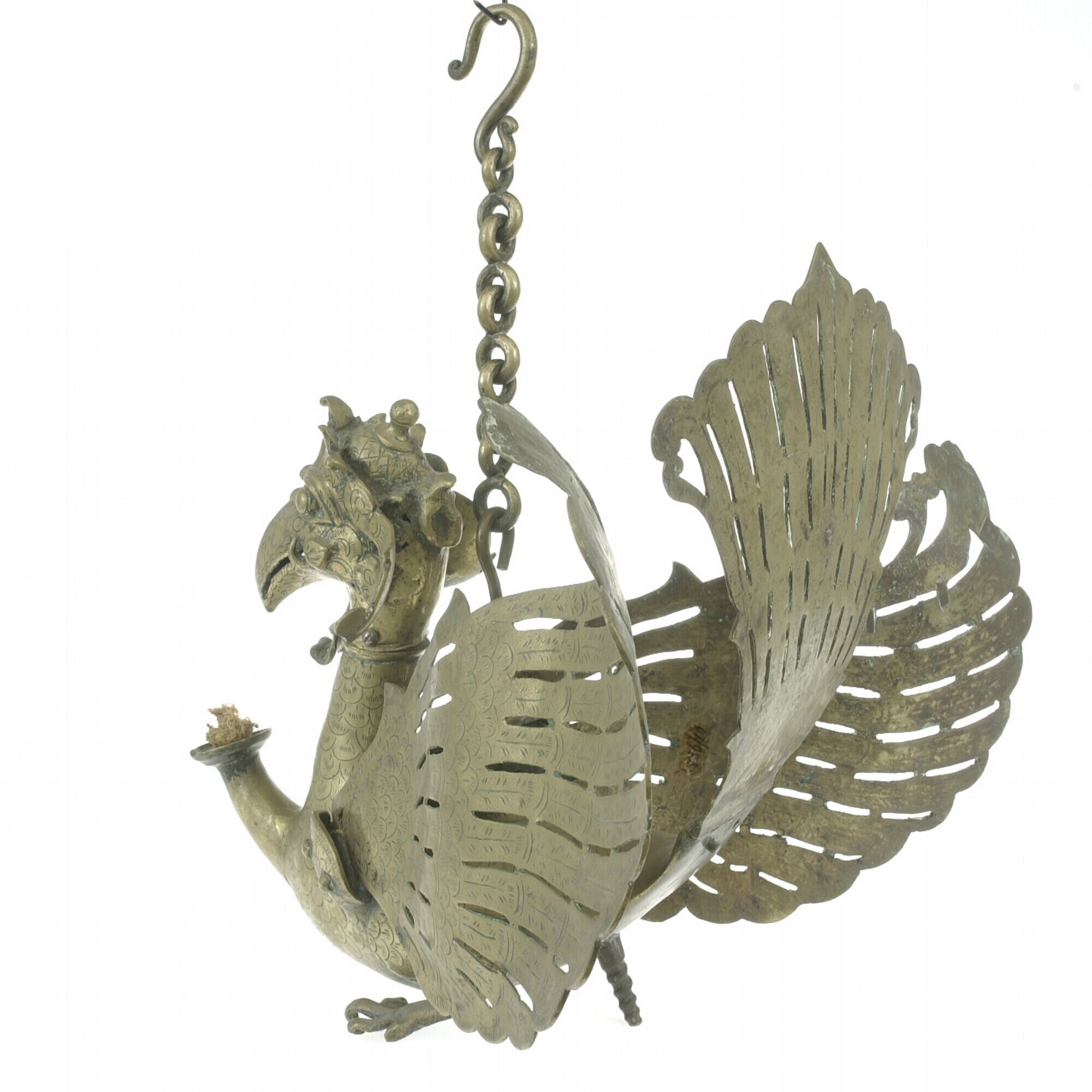 Messingen wajanglamp in de vorm van een gekroonde Ga...