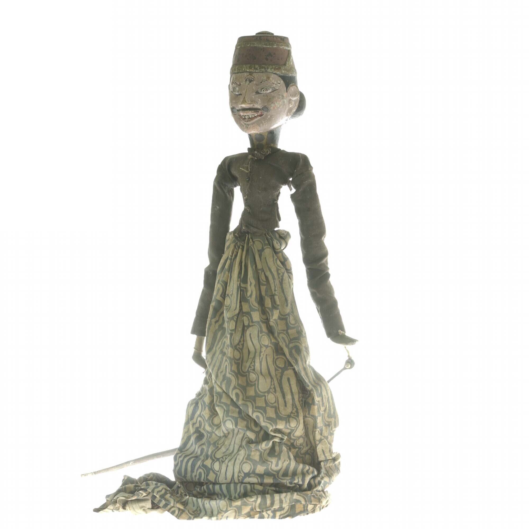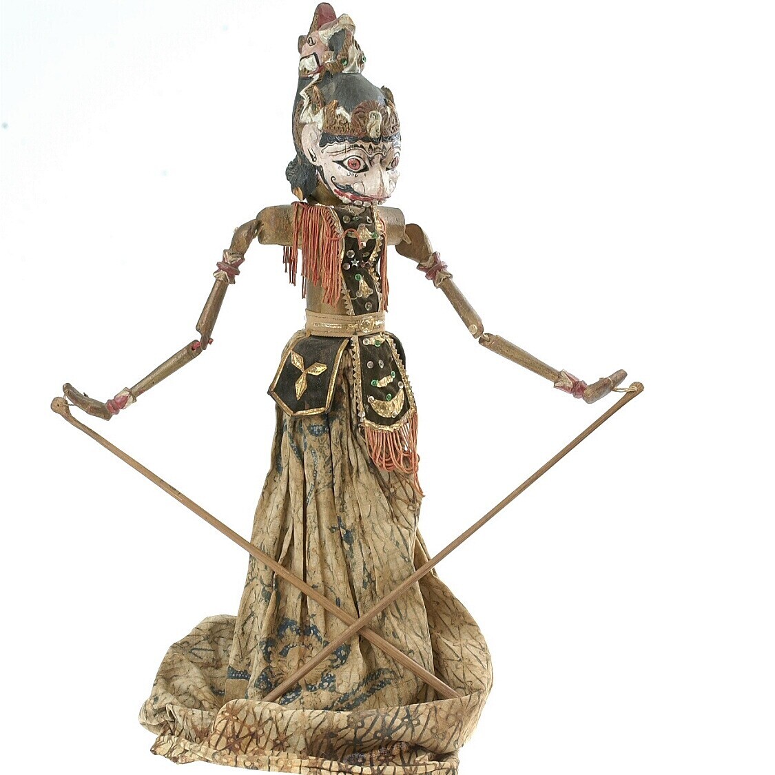 Ovalen messing bord met de wajangfiguren Raja Sajada...