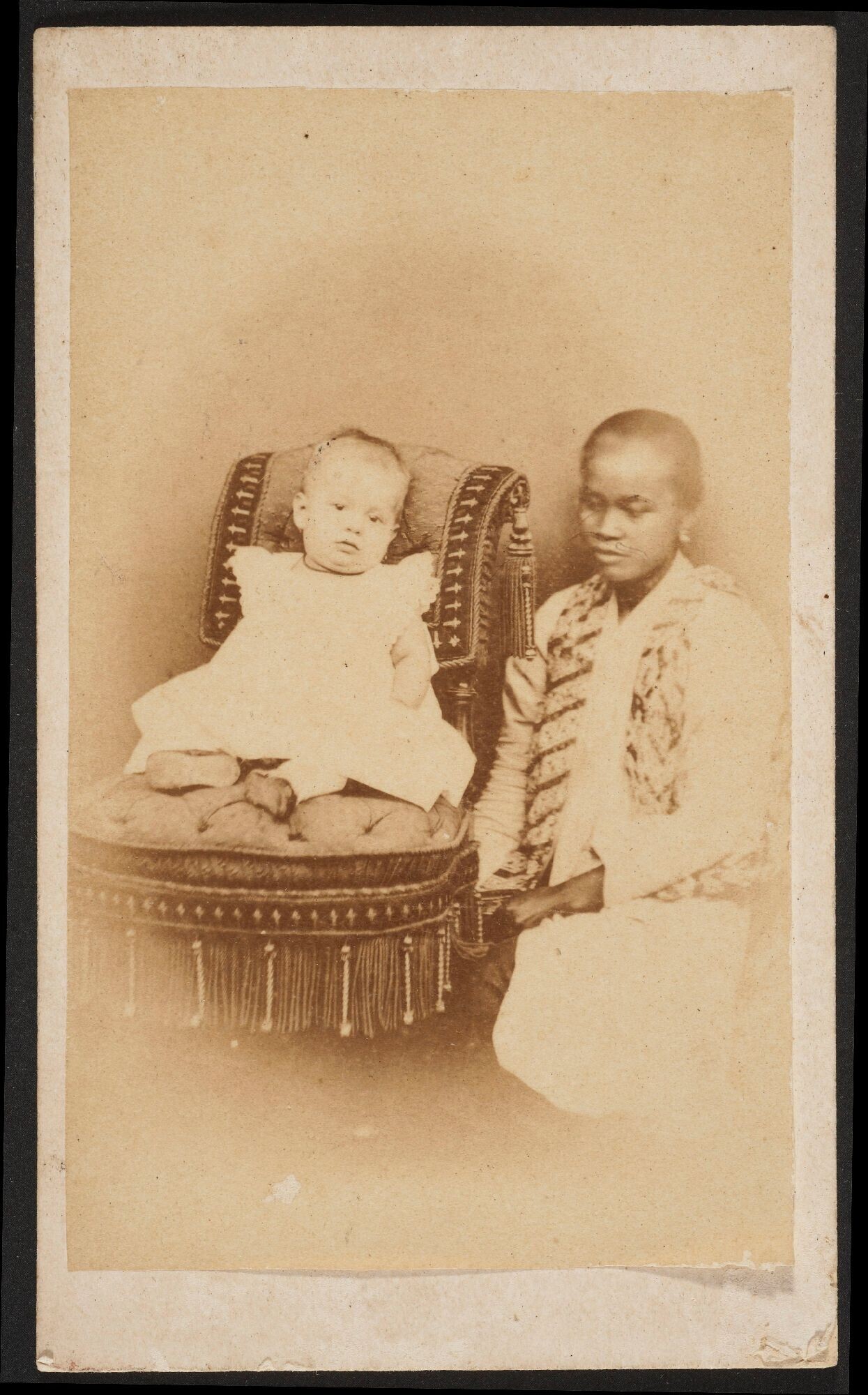 Studioportret van een baby en een kinderverzorgster