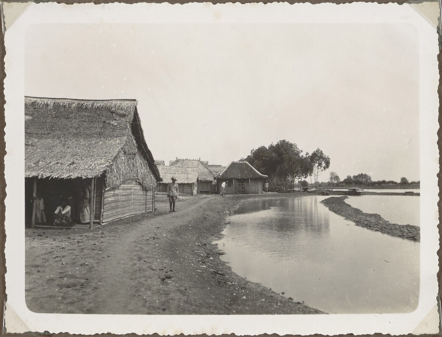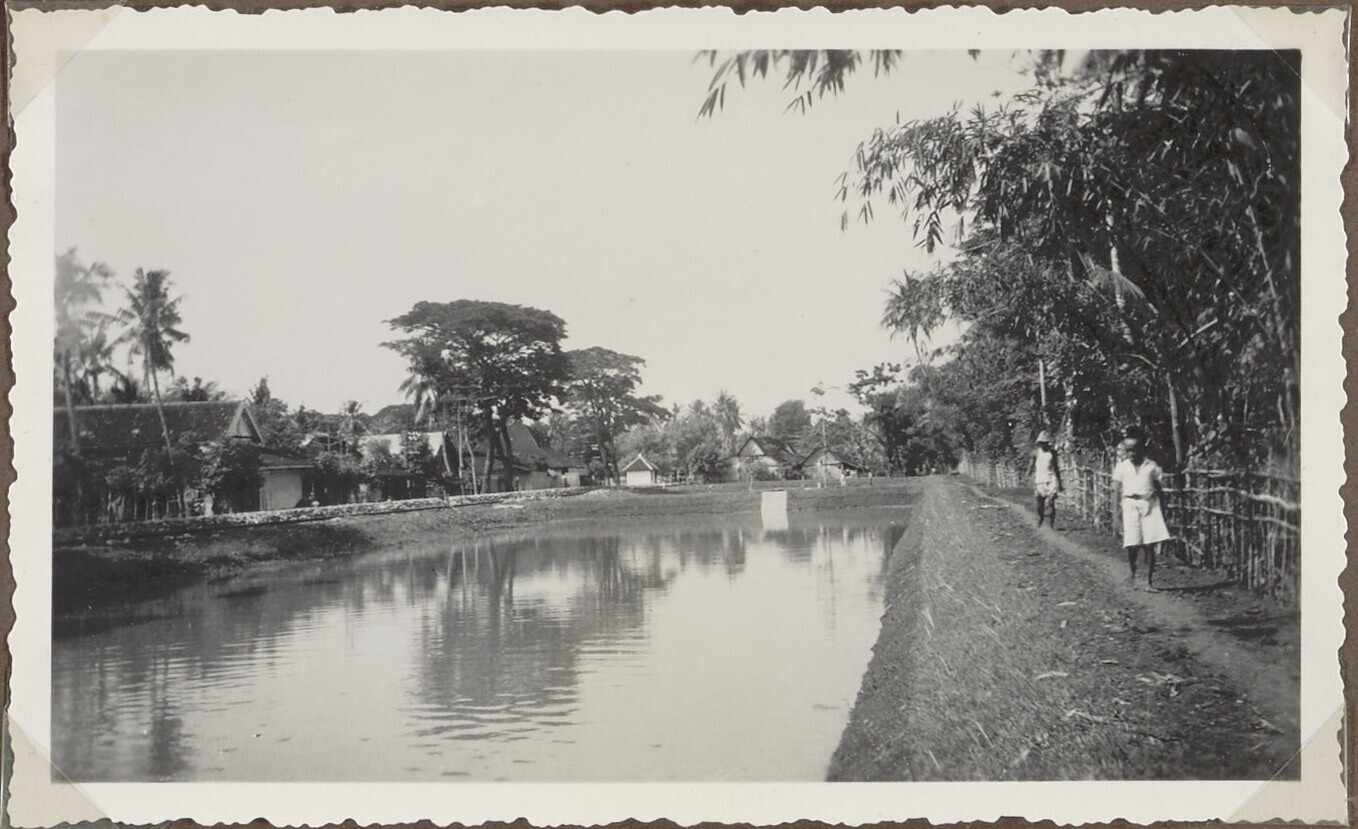 Gezicht op de zoetwatervisvijvers te Karanganjer