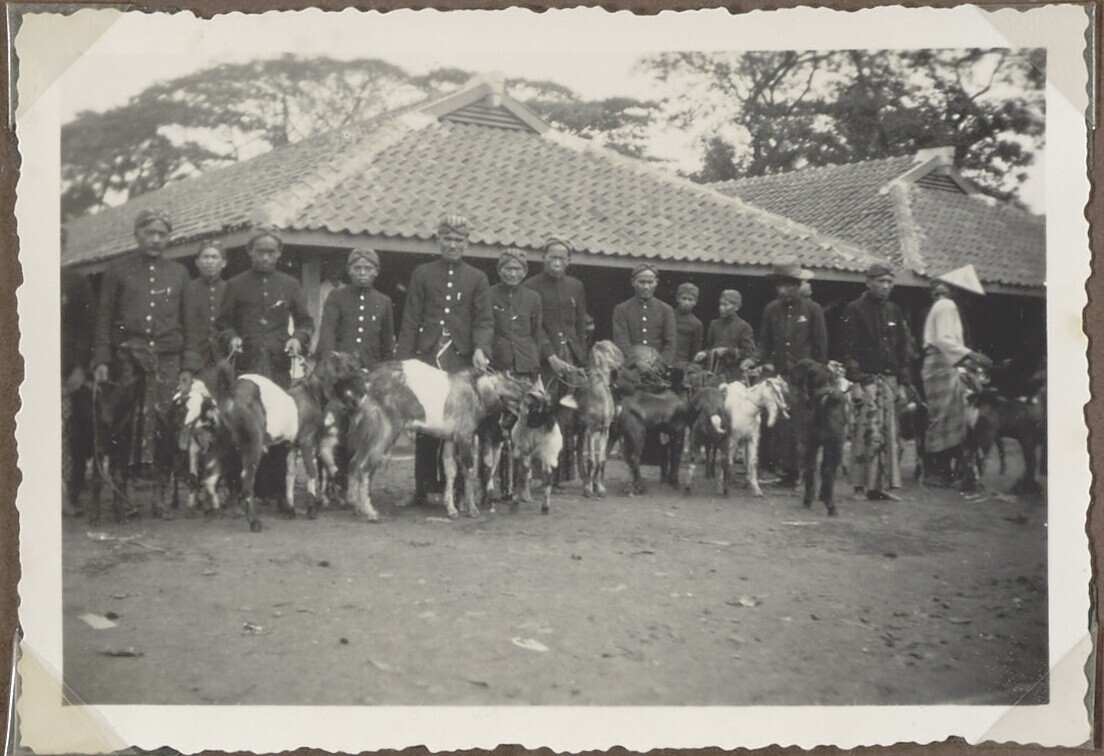 Voor de woningen laten de Javaanse mannen de fokgeit...