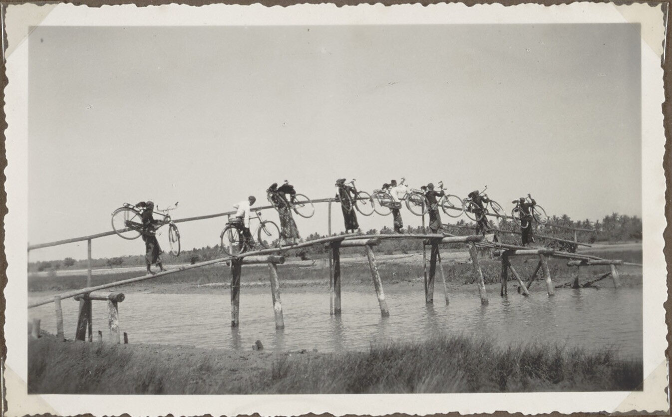 Overzicht van de 45 meter lange houten desabrug Tjeg...
