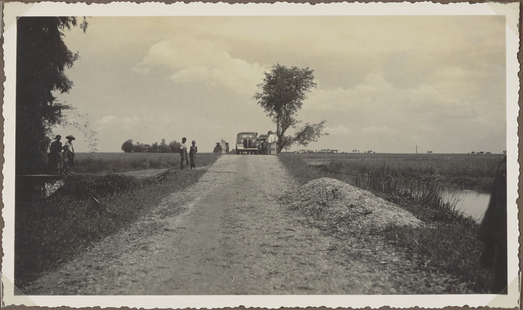 Midden op de weg van Tambakboeloesan naar Morosari a...