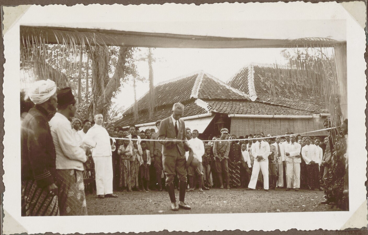 Deze Javaanse arbeider is bezig met het aanbrengen v...