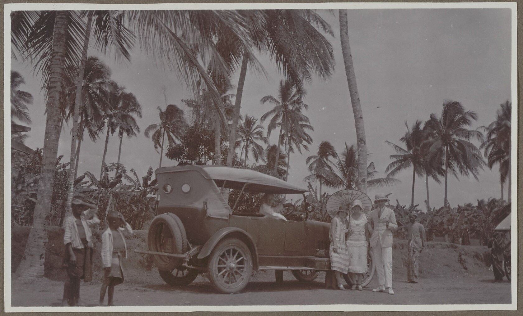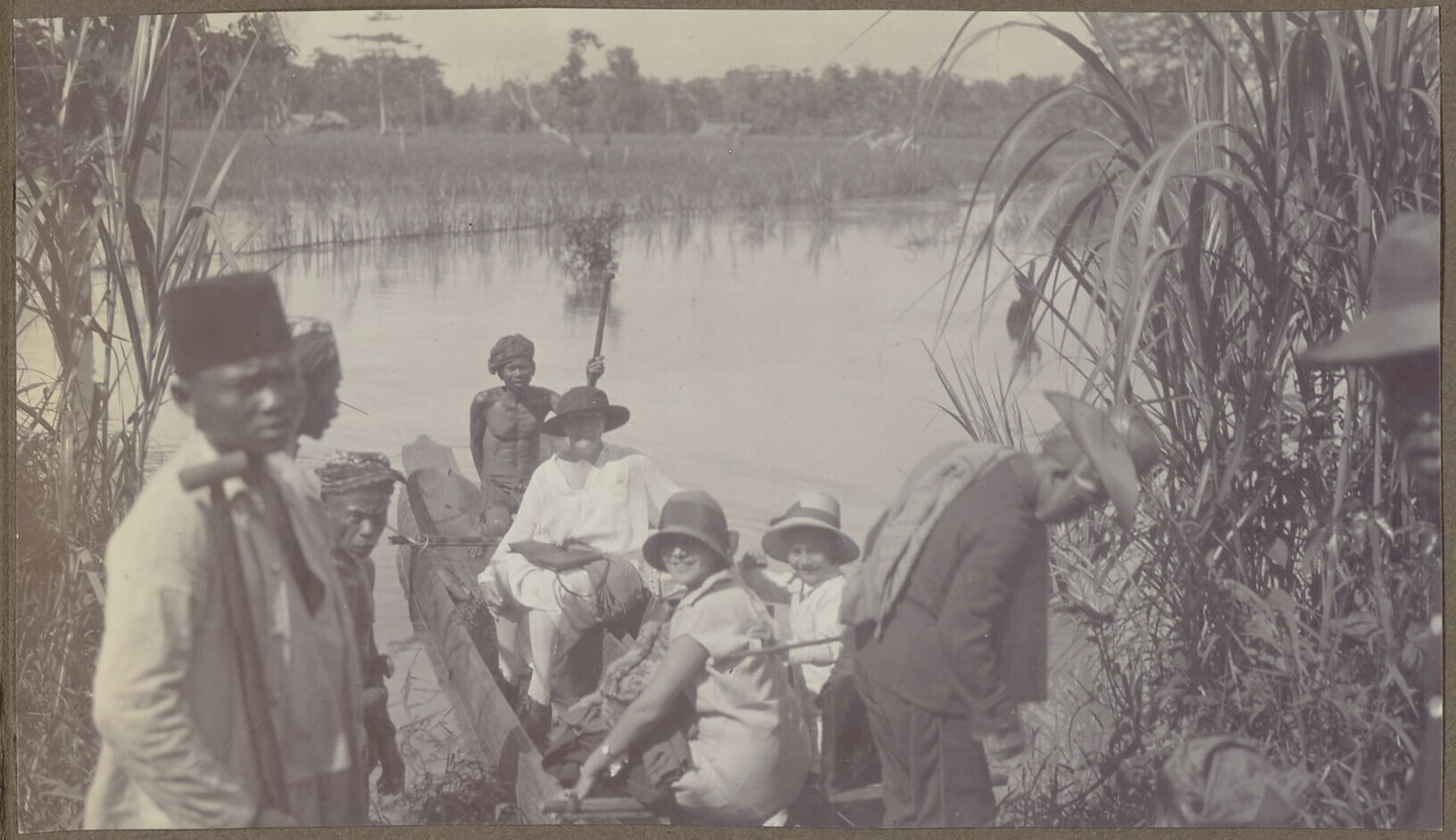 Een Europese man, vrouw en kind en enkele Javaanse v...