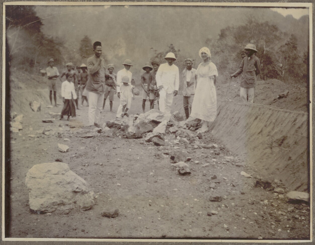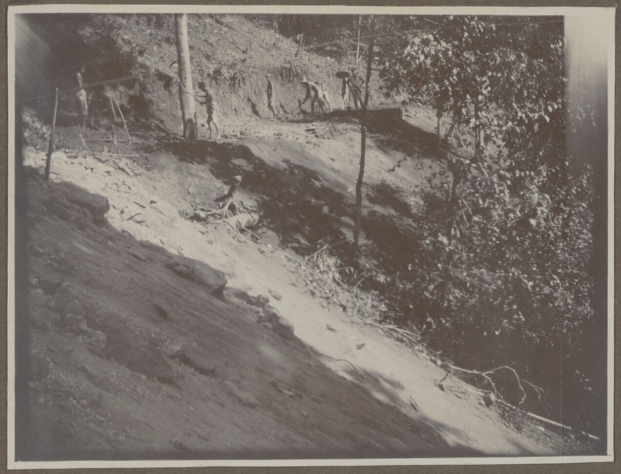 Javaanse ruiters bekijken de aan te leggen bergweg