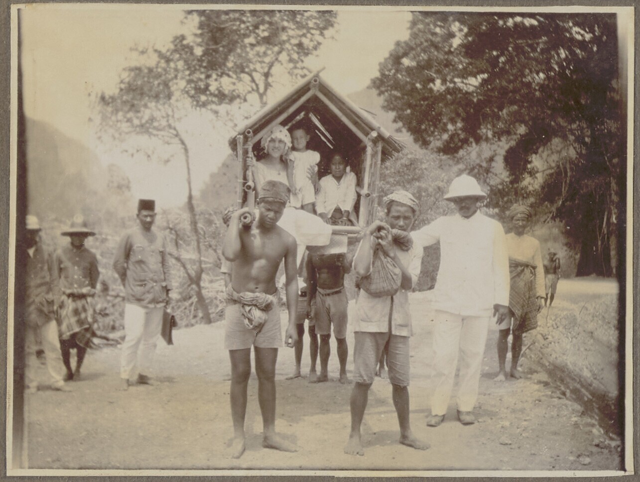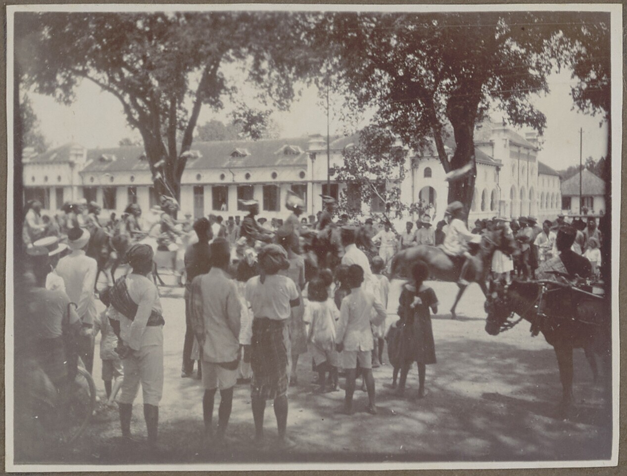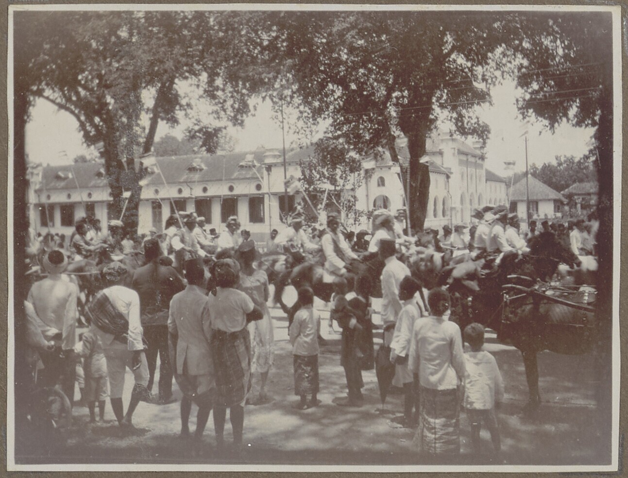 Javanen en Europeanen te paard, in de draagkoets en ...
