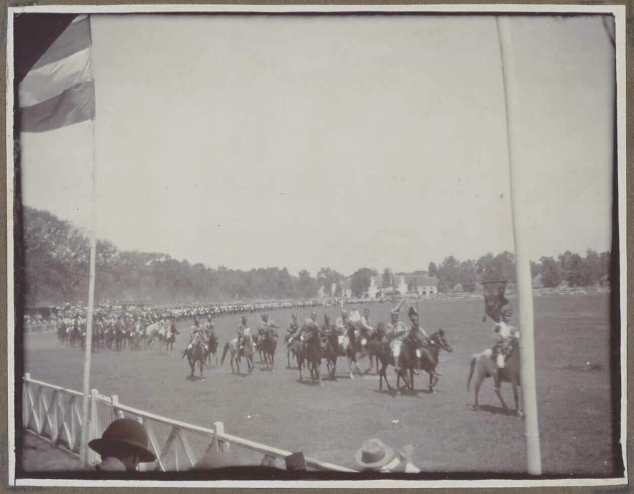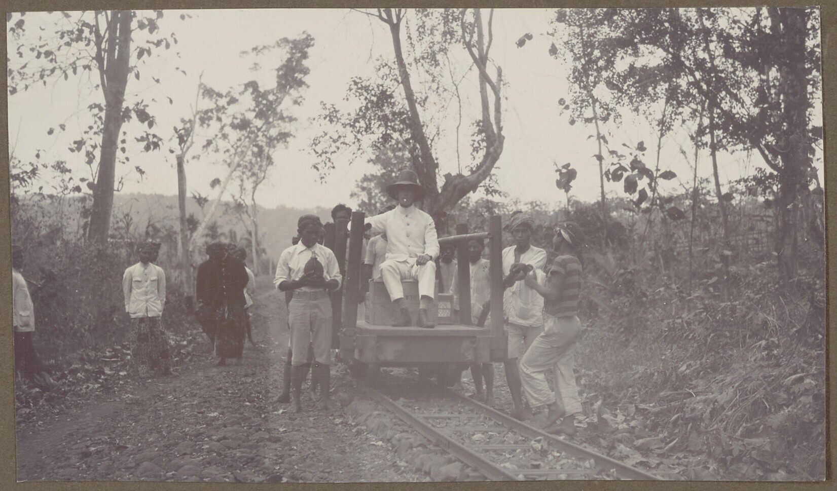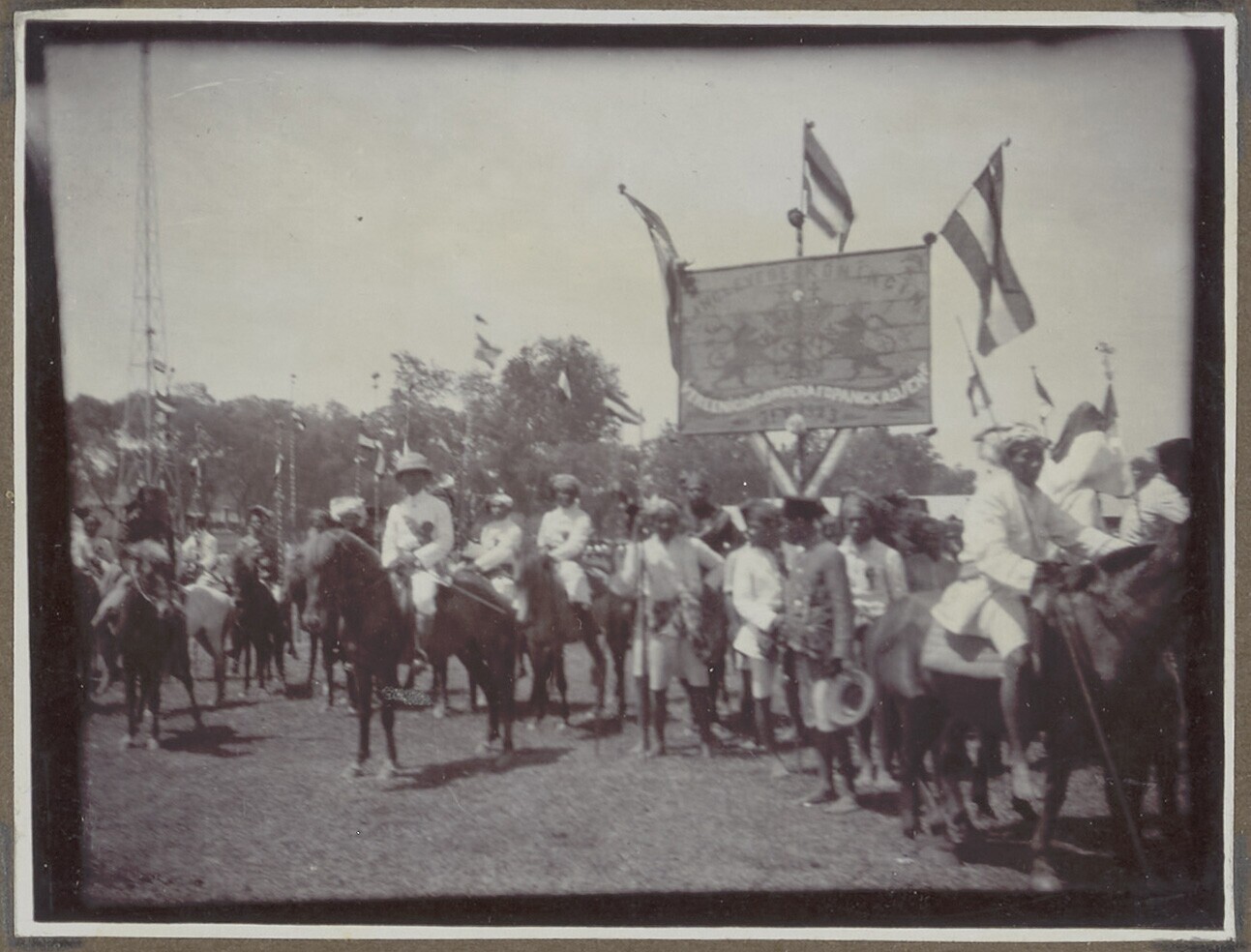 Javanen en Europeanen te paard, in de draagkoets en ...
