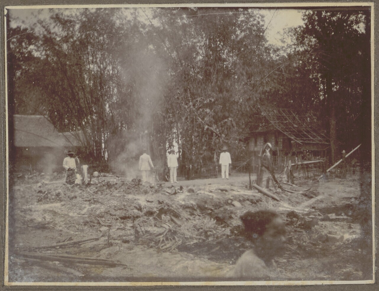 Afgebrande huisjes, als gevolg van de uitbarsting va...
