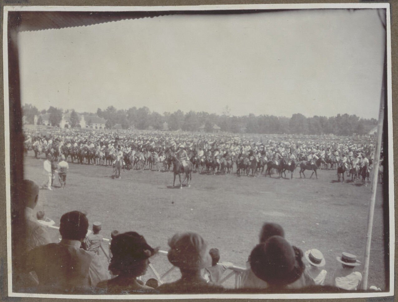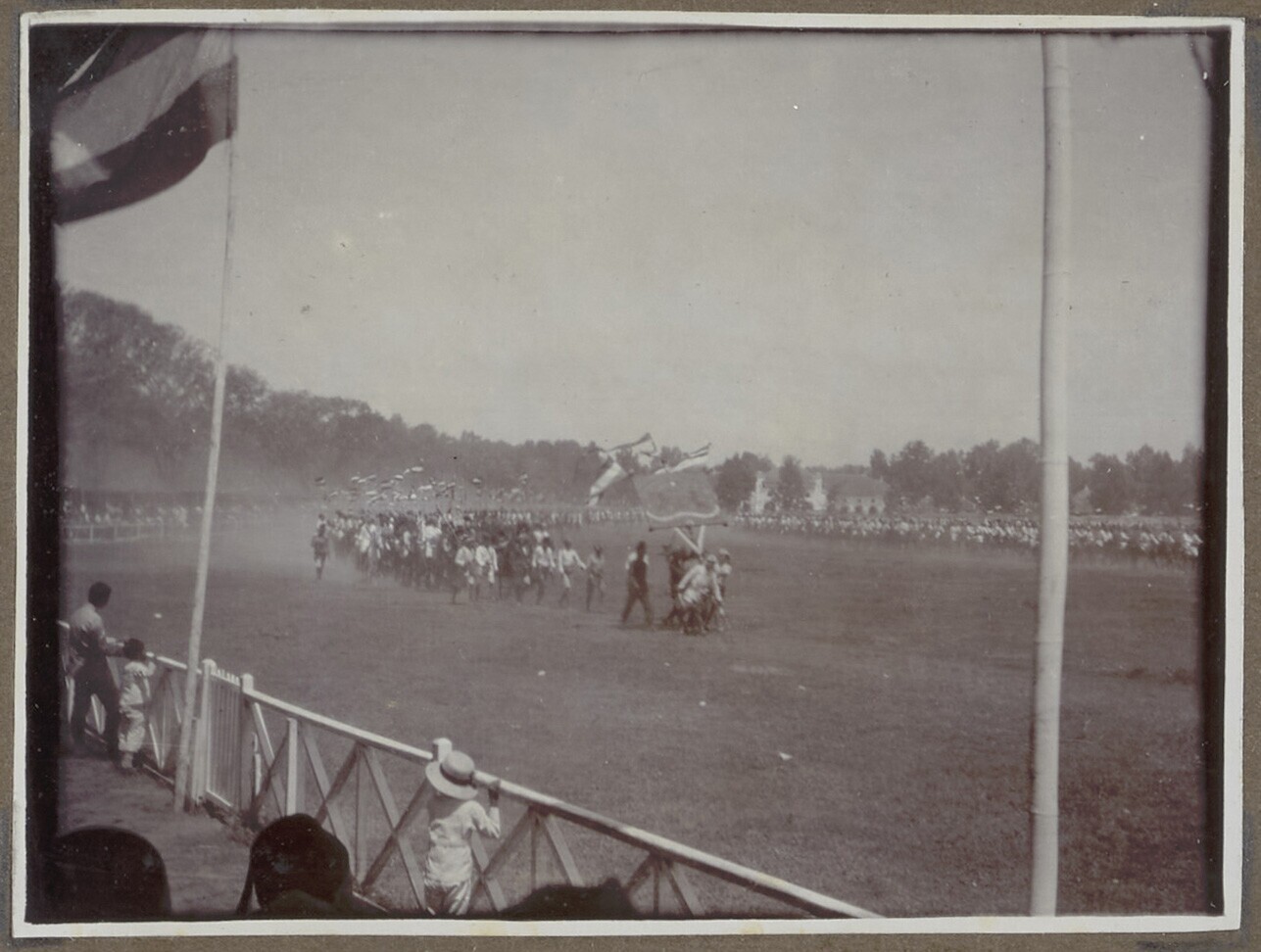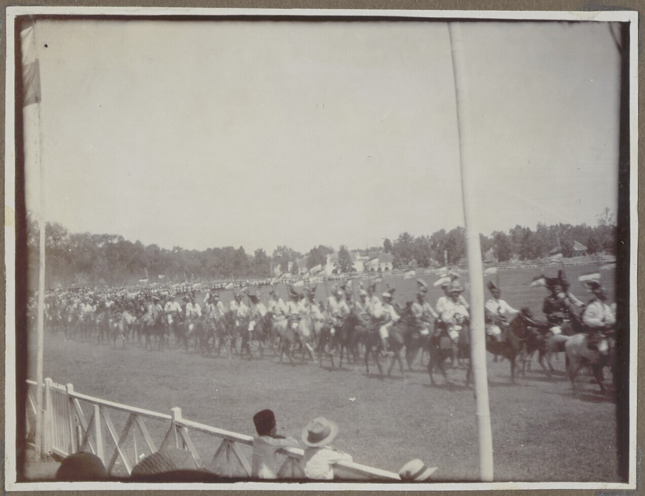 De Javaanse ruiters rijden, onder grote publieke bel...
